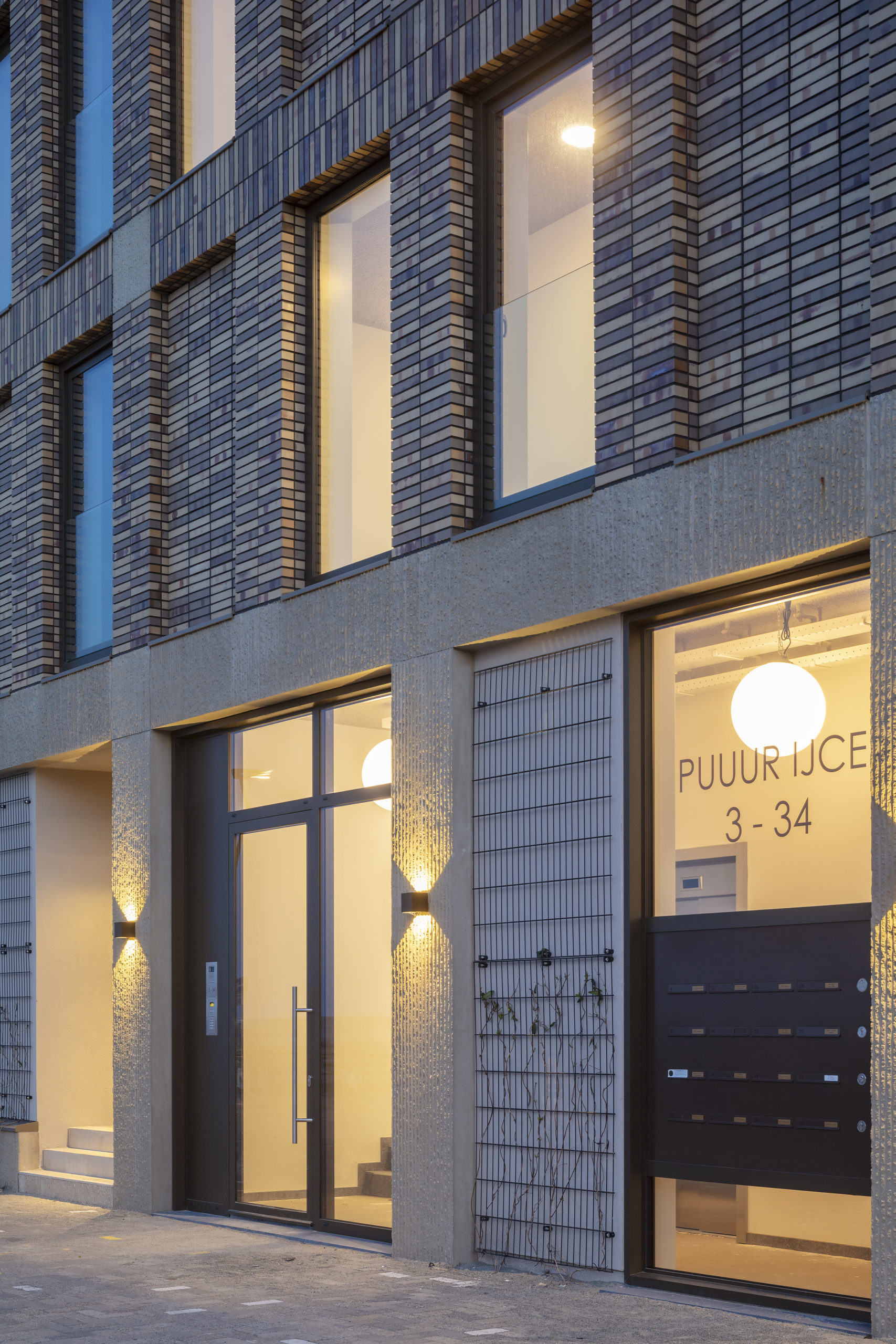 Zelfbouwgroep Samen in Amsterdam realiseerde samen met Atelier PUUUR een duurzaam, gasloos woongebouw met 9 grondgebonden gezinswoningen en 16 appartementen. De grondgebonden woningen hebben de voordeur aan de straat. De bewoners ontmoeten elkaar op het gemeenschappelijke dakterras en de gemeenschappelijke woonkamer aan de binnentuin. Het woongebouw is duurzaam en rainproof en heeft een inpandige ondergrondse parkeerkelder.