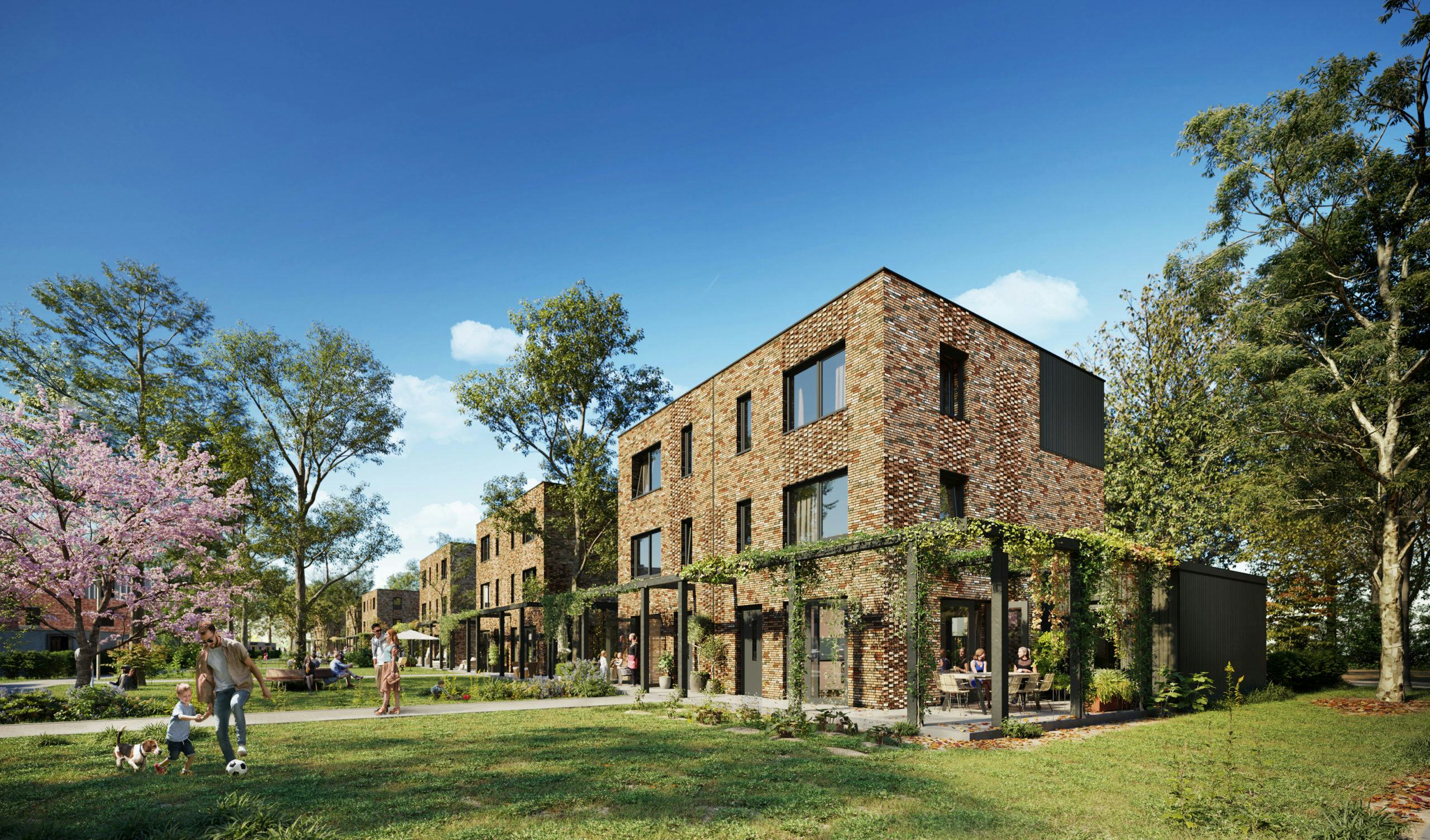 Programma: 24 twee-onder-een-kap-woningen en zes herenhuizen.