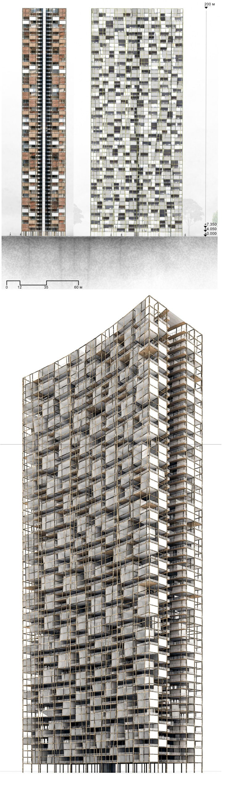 It is multi functional, flexible and open building system of living units and open spaces, which can easily can be changed. To enlarge or to increase of units is incorporated in this project. It is not a static concept but a dynamic concept for a tower. The main idea that it is a bottom up approach to full in the program instead of a top down approach.