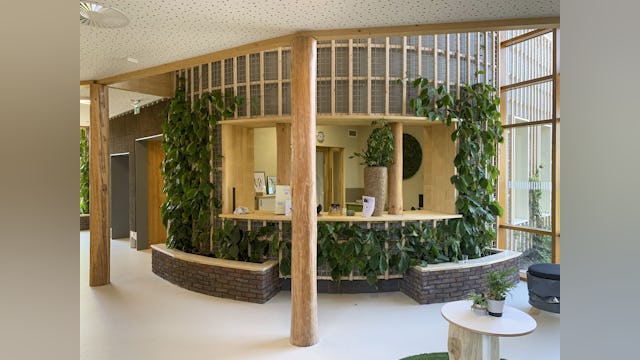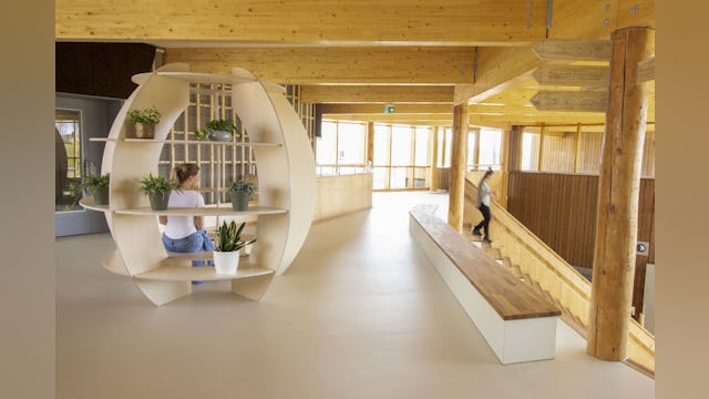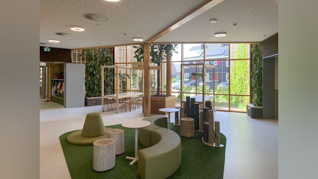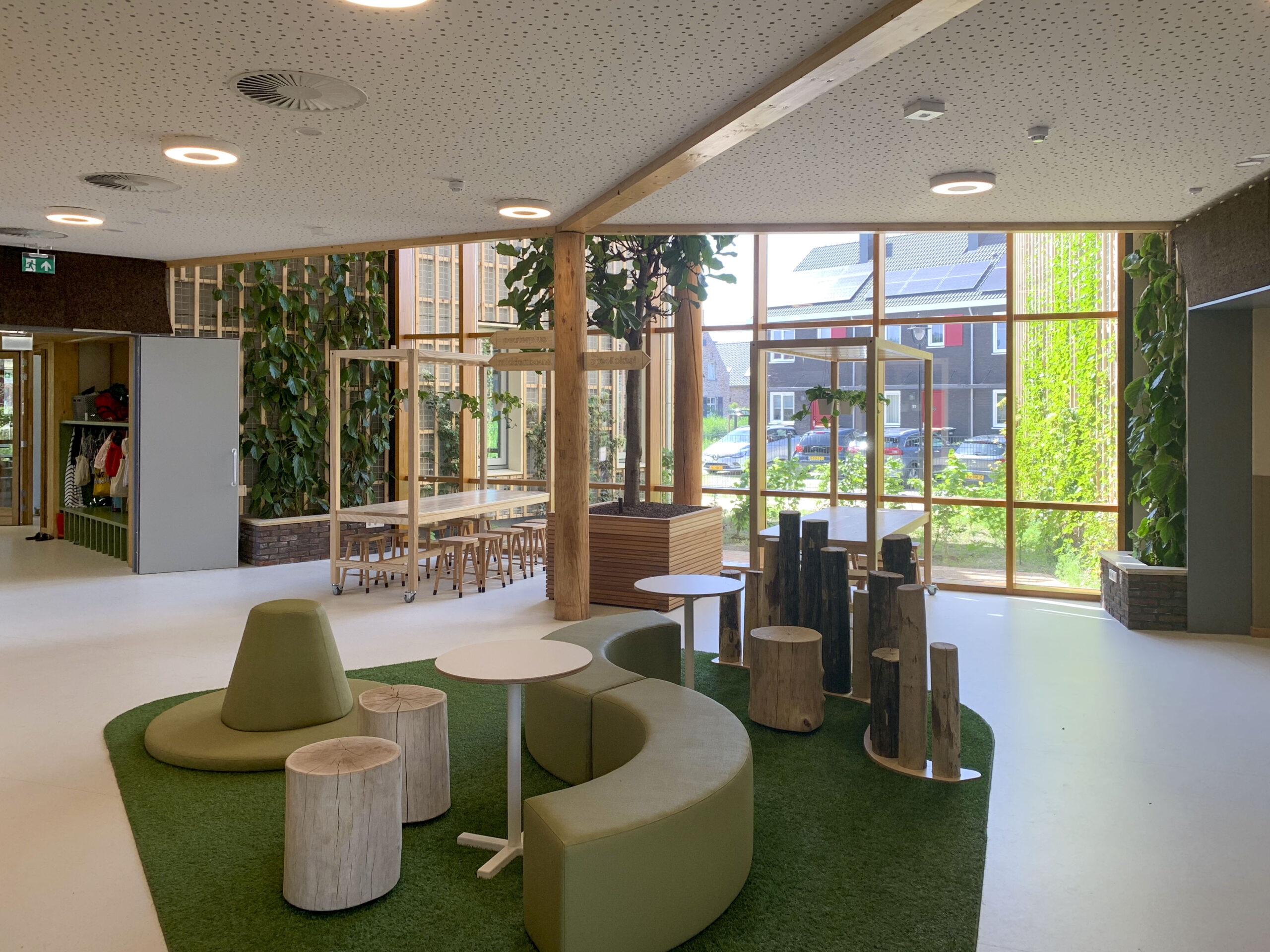 Natuur in onderwijsgebouwen hebben een enorm positieve effecten op de gesteldheid, welzijn, leervermogen en concentratie: een ideaal ontwikkelingsklimaat. Deze biofilische school is ontworpen met biobased en natuurlijke materialen, heeft een openlucht lokaal, natuurlijke referenties, levend groen en kippen en lowtech installatie principes. Natuurlijk waar het kan en technisch waar het moet!