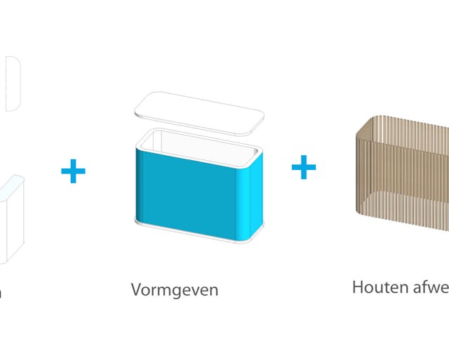 Gekozen materialen combineren een lange levensduur, hoge krasbestendigheid en onderhoudsvriendelijkheid met een hoogwaardige uitstraling. In het interieur zijn natuurlijke, door-en-door gekleurde en solid surface materialen toegepast. Massief houten latjes van vergrijsd iepen bevestigd op blauw mdf en een uitgelichte grafische laag gefreesd uit solid surface panelen creëren een warme uitstraling.