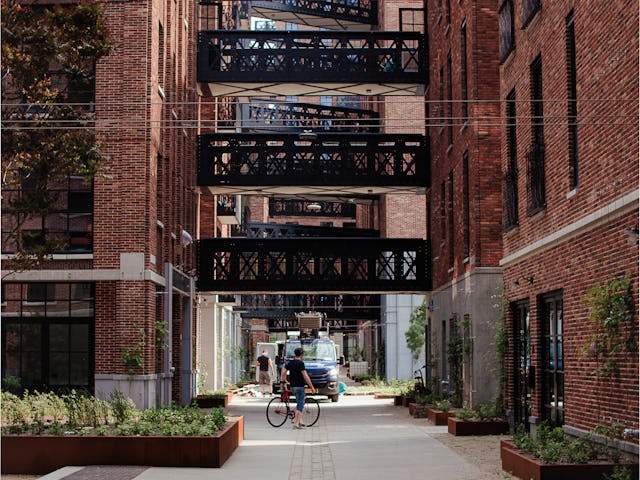 Door de aandacht die aan zowel de architectuur als het staalwerk is besteed ontstaat er een compleet geheel dat verbonden is met zijn directe omgeving. Ruim 5 kilometer aan balkons, 43 bruggen en 62 noodtrappen zorgen voor een stoere, ruige uitstraling die de plek doet aanvoelen als een uniek stukje Rotterdam. Het kleur gebruik versterkt de samenhang en het stalen karakter.