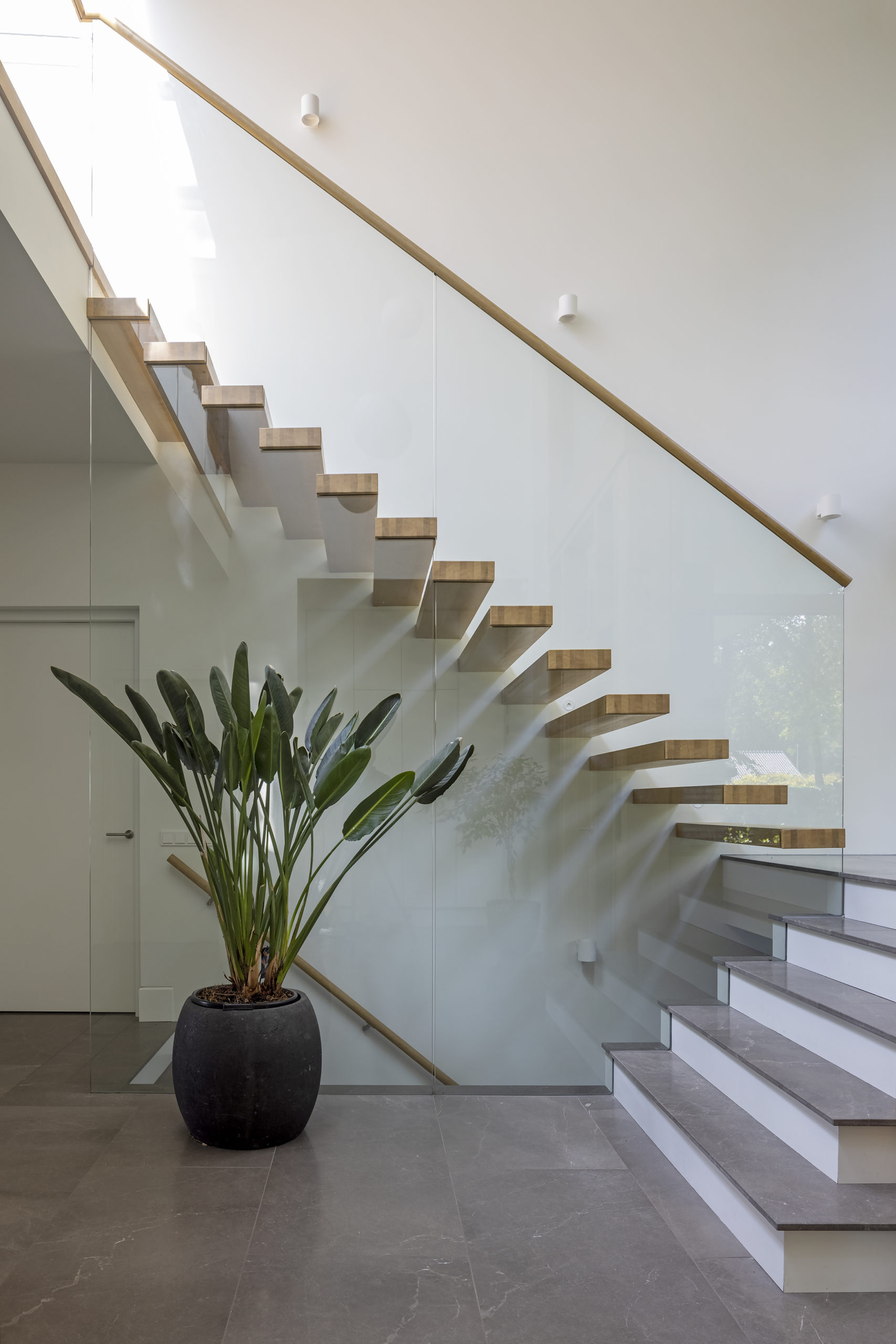 Voor de opdrachtgevers was het belangrijk dat iedere ruimte zou worden voorzien van natuurlijk daglicht. Rondom het huis is het omliggende terrein op plaatsen verdiept, zodat ook in de ruimtes in de kelder natuurlijk licht binnen kan treden.