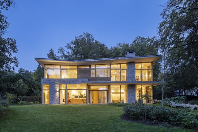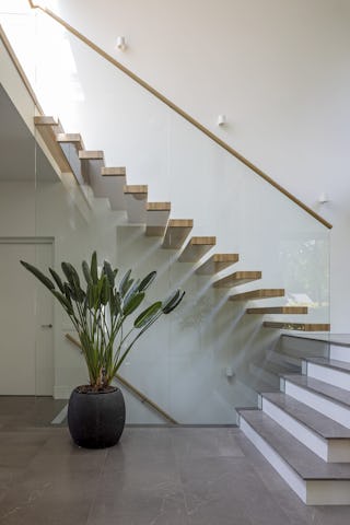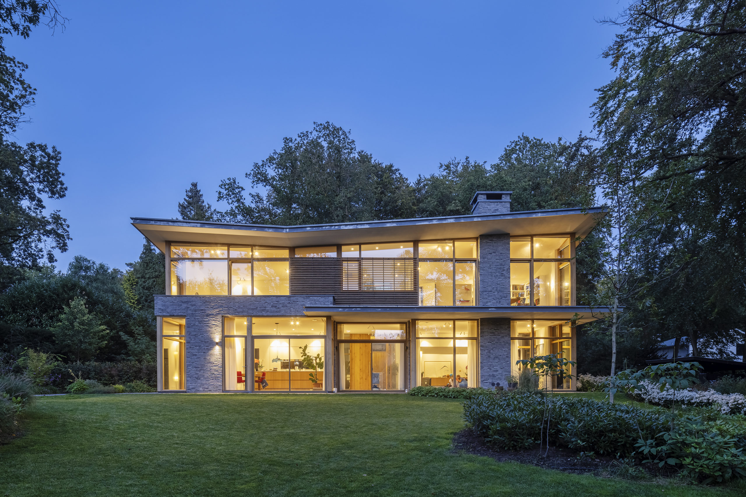 Het huis is modern en ontworpen met een zekere elegantie en verfijning. De overstekken geven het huis een intiem karakter, de grote glasvlakken halen de natuur naar binnen. Het bouwvolume is opgebouwd uit vier asymmetrische volumes die ieder op zichzelf nauwgezet aansluiten bij de menselijke maat. De asymmetrische aanpak biedt de mogelijkheid om iedere ruimte qua grootte exact aan te laten sluiten bij de functie waar deze voor bedoeld is.