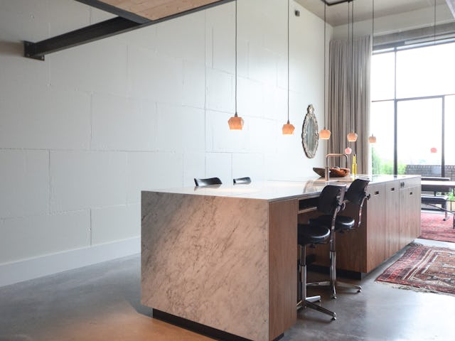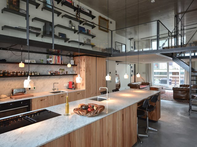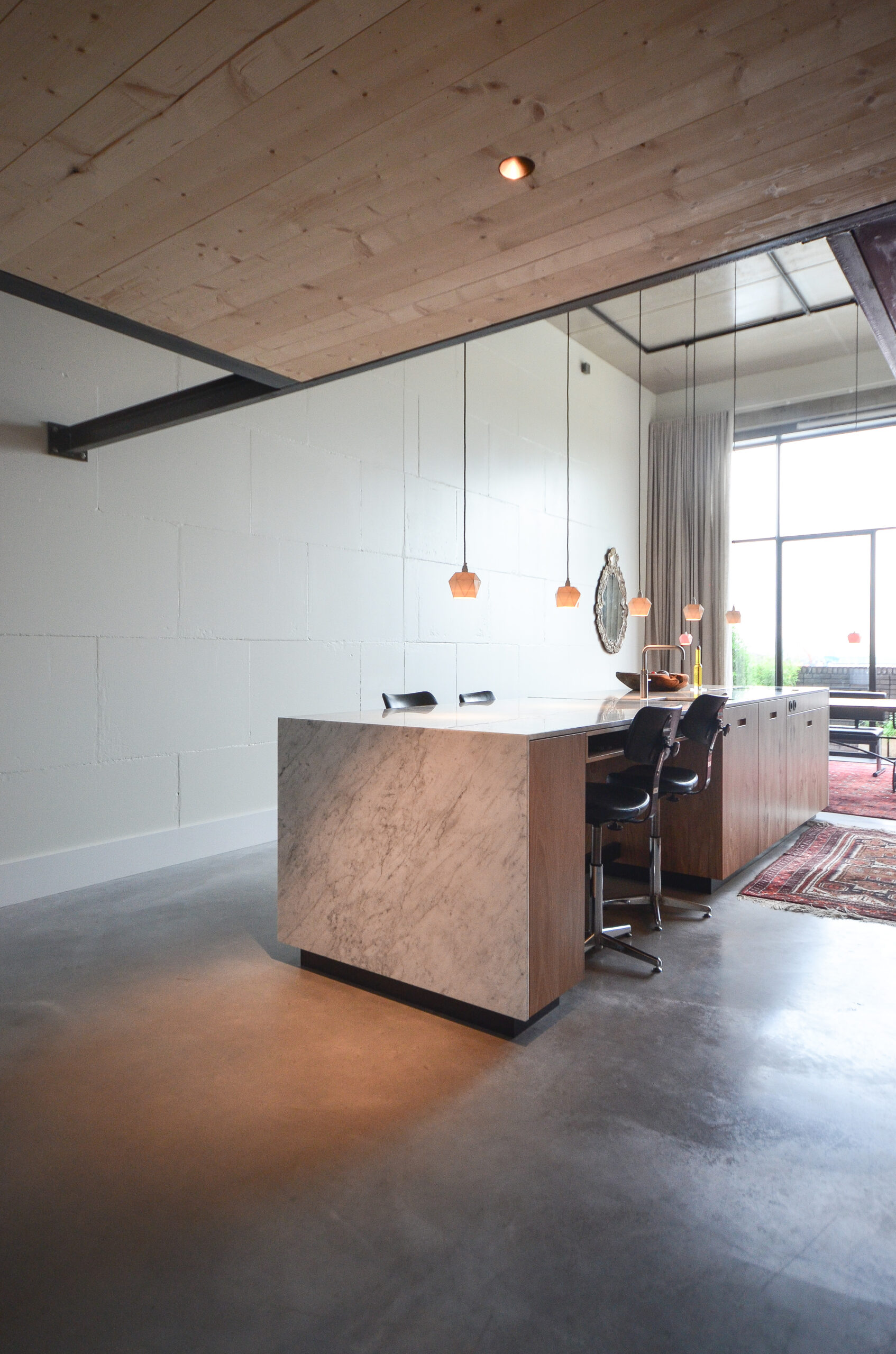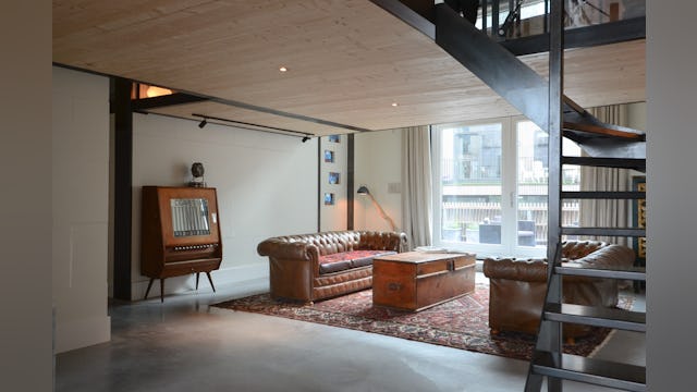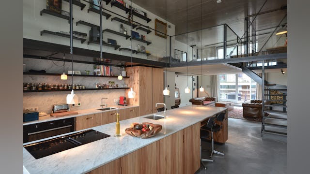Voor de materialisatie van het ontwerp is 'ruwbouw is afbouw' het uitgangspunt, wat zorgt voor en een stoere en tegelijkertijd warme sfeer. De materialen blijven hun oorspronkelijke kwaliteit en uitstraling behouden. De nieuwe betonvloer van de loft, en het staal en hout van de entresol zijn minimaal mogelijk behandeld. De casco wanden zijn enkel geschilderd waardoor de opbouw zichtbaar blijft. Het onbehandelde marmer van de keuken, ontworpen door studio SOOL, maakt het plaatje compleet.