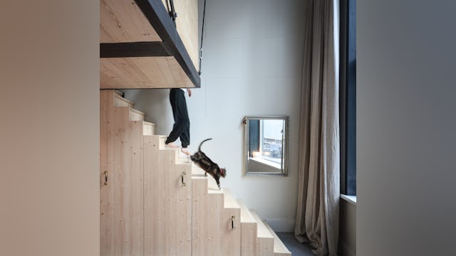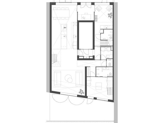 De verbinding en beleving van de ruimtes op en onder de entresol waren andere belangrijke uitgangspunt. De minimale hoogtes van deze ruimtes zouden niet als zodanig ervaren mogen worden. Het resulteerde in een appartement met meer vide dan verdieping. Door te ontwerpen met zichtlijnen en vides zijn alle ruimtes met elkaar verbonden, en blijft de sfeer en ervaring van het oorspronkelijk dubbel hoge appartement overal aanwezig.