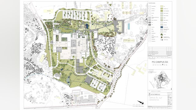 Het nieuwe gebouw ligt, achter het monumentale originele gebouw van de Norwegian Universiy of Agricultural Sciences, in een open landschap van glooiende heuvels, het lange en lage profiel van het nieuwe gebouw zorgt ervoor dat het in de omgeving van de campus past. In een prachtig park met planten, bloemen en open vaarwater staat het nieuwe Veterinair Gebouw, qua kleur afgestemd op de antiquarische gebouwen op de campus.