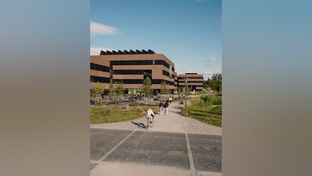 De façade is opgebouwd uit meer dan 300.000 met de hand gesneden bakstenen, elk met kolen gestookt om ze een individuele glans en textuur te geven. De roodbruine tint van de bakstenen komt ook overeen met de omliggende campusstructuren, waarvan sommige dateren uit de oprichting van de campus in 1859. Inheemse beplantingen omringen het grootste deel van het nieuwe gebouw en zijn ook bovenaan te vinden, waar sedumdaken een welvarende insectenhabitat. Op 1 september 2021 is het nieuwe Veterinair Gebouw op Campus Ås officieel geopend voor 700 studenten en bijna 1.000 medewerkers.