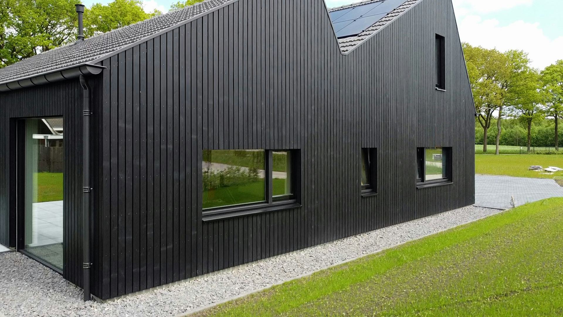 Met uitzondering van de fundering is de woning biobased gebouwd met een houten constructie, natuurlijke isolatie en houten gevelbekleding. De verbindingen zijn geschroefd, kit en PUR zijn vermeden. De woning is hiermee circulair. De klimaatinstallatie bestaat uit een warmtepomp met bodembron en balansventilatie met warmteterugwinning. Op het dak liggen 38 geïntegreerde pv-panelen.