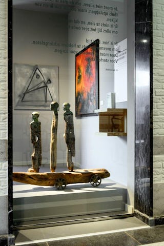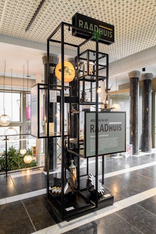 In aanloop naar het interieurontwerp werd de karakteristieke indeling met alle kamers (burgemeester, wethouders, griffier, etc.) als concept gebruikt voor de bibliotheek met kunstcollectie: ‘dwalen van schatkamer naar schatkamer’. Duinzand ontwikkelde vervolgens de overkoepelende verhaallijn en koppelde daarmee de verschillende functies in het gebouw door middel van kunst aan elkaar. De verschillende kamers hebben een thema gekregen waar kunst, boeken en poëzie elkaar aanvullen.