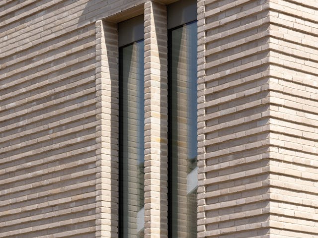 Achter de gerestaureerde monumentale gevel bevindt zich een modern, ingetogen bouwvolume dat zich onderscheidt door toepassing van een lichte baksteen maar tegelijkertijd aansluiting vindt door details die refereren naar de kenmerken van de historische gevel. Door de beperkte ruimte aan de straatzijde is de gevel gedurende de bouw gestut aan de achterzijde wat de bouwwerkzaamheden complex maakten.