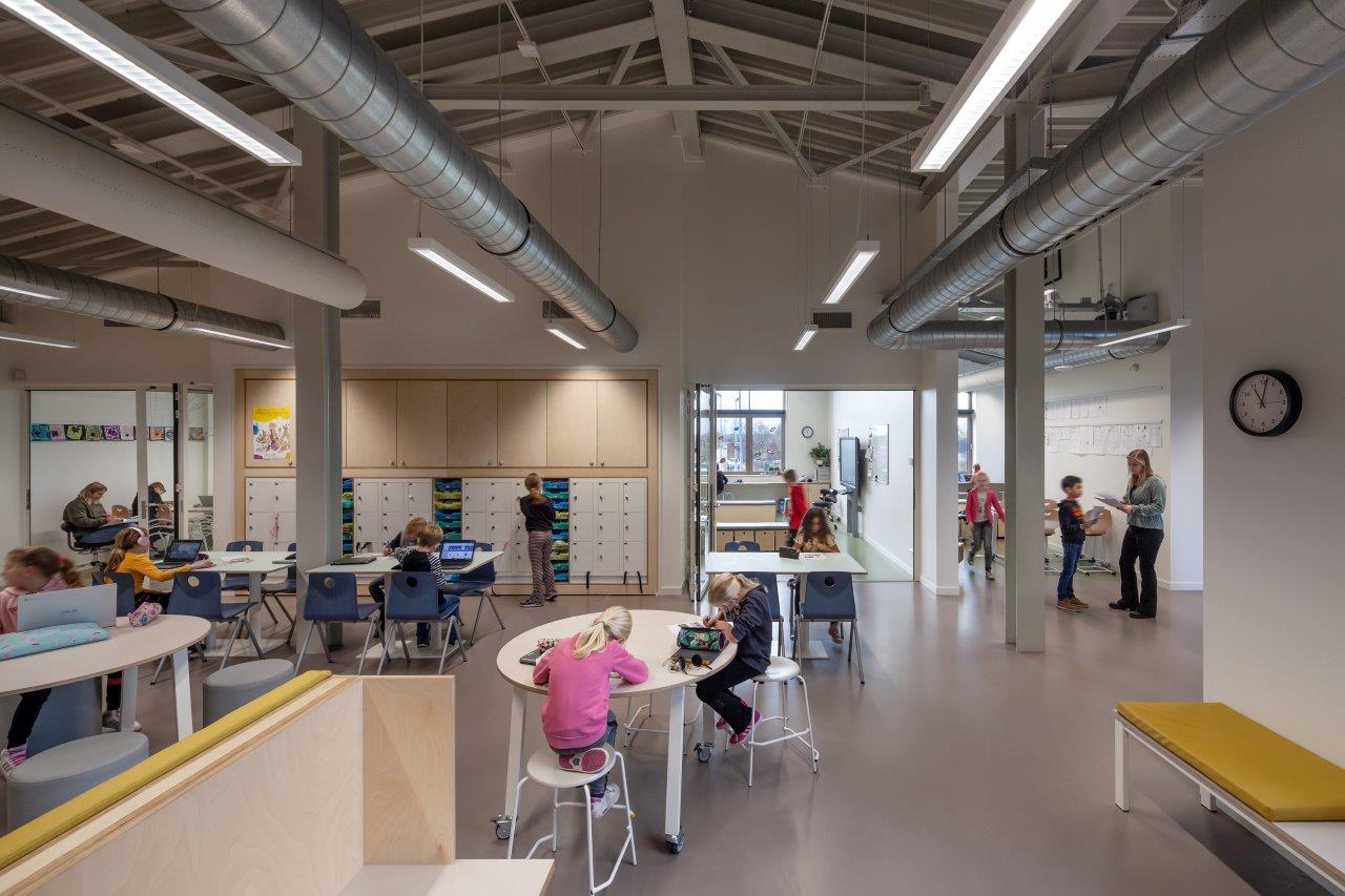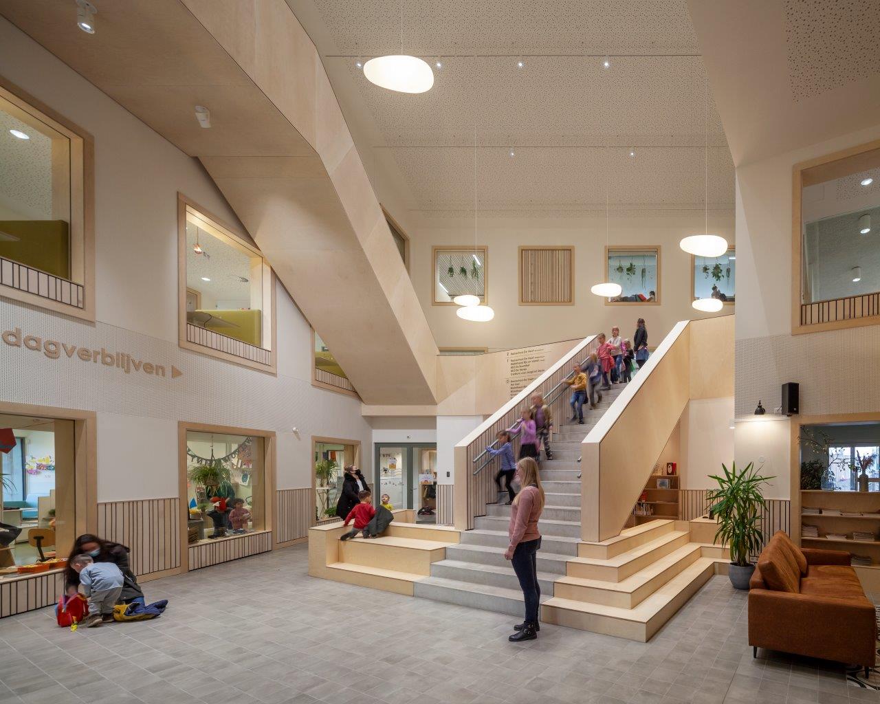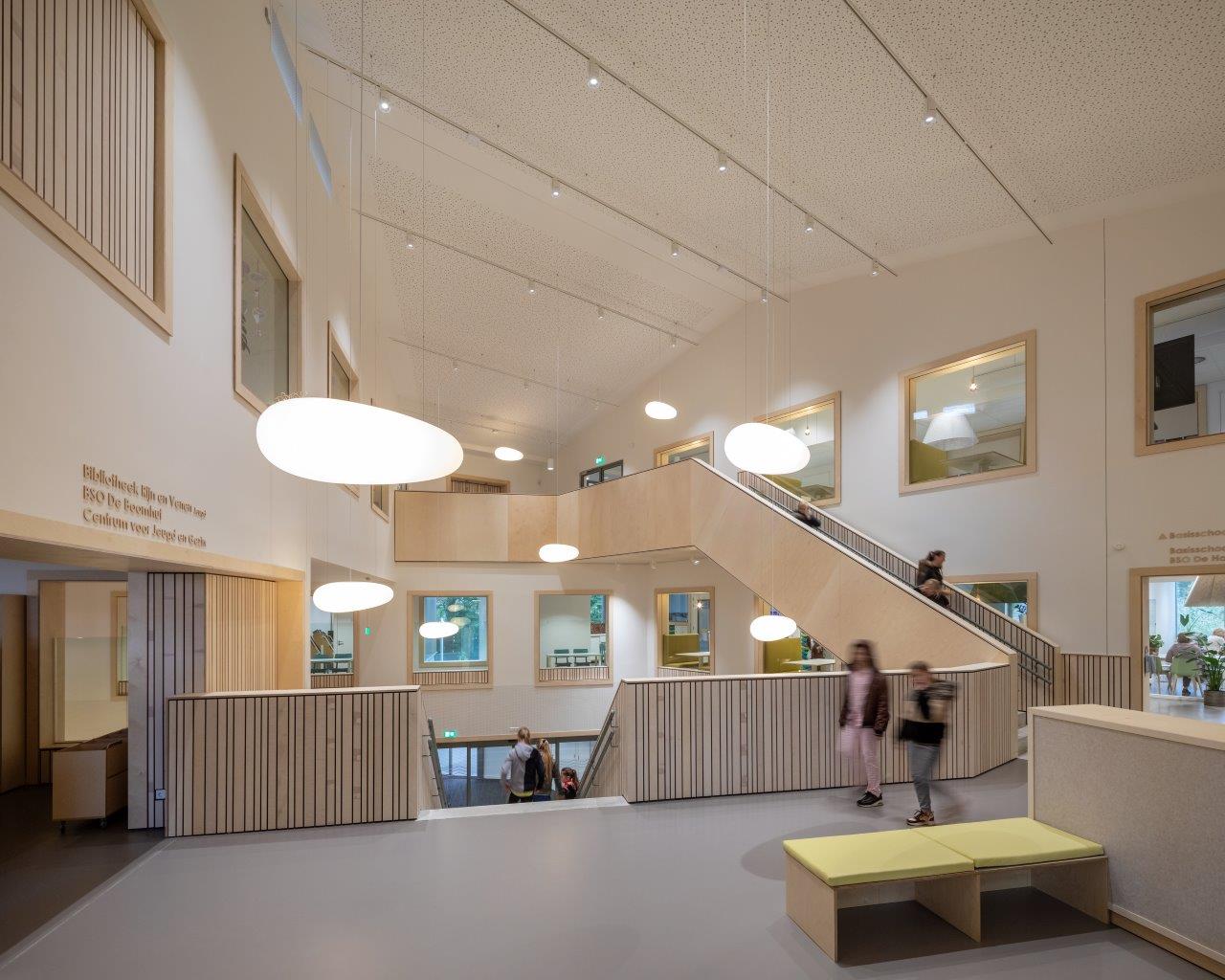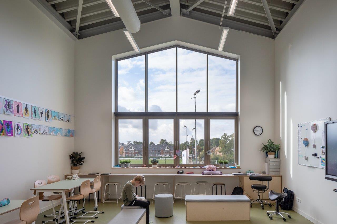 Vanuit dit hart waaieren de verschillende gebruiksfuncties uit over de twee vleugels van de L-vormige plattegrond (6700 m2). Door de functionele diversiteit is er op elk moment van de dag activiteit in het gebouw, zelfs in periodes zonder actief onderwijs. In het ontwerp van de gebruiksruimtes is, door de toepassing van open leerruimtes in plaats van traditionele klaslokalen, rekening gehouden met eventuele toekomstige aanpassingen in het onderwijs.