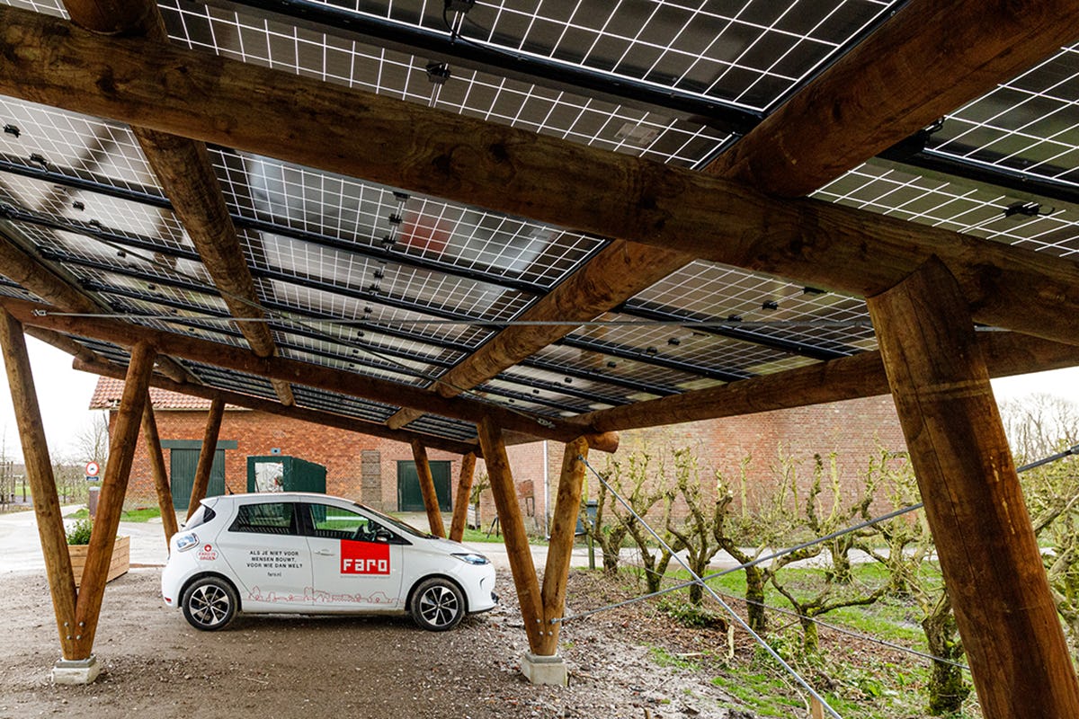 Met dit project voorziet FARO in haar volledige elektriciteitsbehoefte, inclusief overstap naar verwarming met warmtepomp. En het mooie van het landgoed is: we kunnen de pieken van de stroomopwekking direct kwijt bij de andere gebruikers op het landgoed. Samen vormen we een modern smart-grid! Met deze carport maken we zo een eerste stap richting Olmenhorst-energie, een project voor de langere termijn om in de hele energievoorziening van het landgoed duurzaam te voorzien.