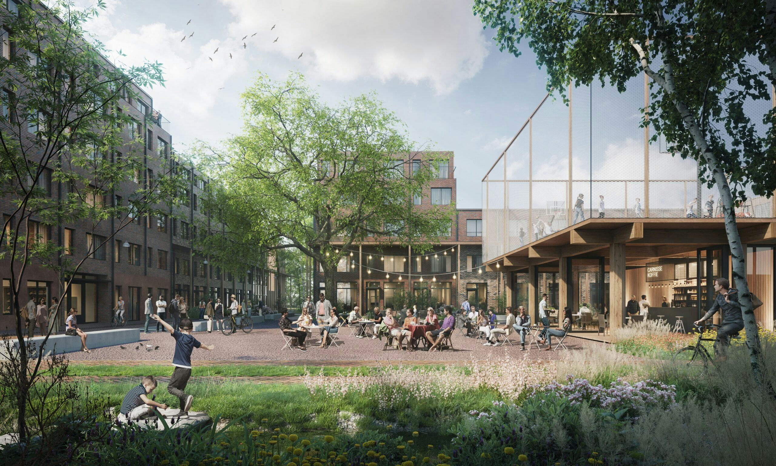 De landschappelijke en beschutte ruimtes langs de centrale groene as bieden ruimte om te spelen en te ontspannen. Zo ligt centraal in het plan een groot autoluw gebied met een nieuw buurtplein en functioneren verschillende wadi’s als de tijdelijke berging van hemelwater maar zijn ze tegelijkertijd ook natuurlijke en spannende speelplekken.