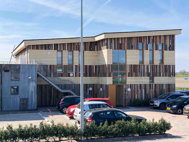 In het op het noorden gerichte schild bevinden zich raampartijen waardoor de gehele ruimte gelijkmatig verlicht wordt door noorderlicht. Dit geeft een vermindering van elektriciteitsverbruik (verlichting), een prettige werkomgeving voor de werknemers en voorkomt bovendien direct zonlicht. Aan de westgevel zorgen roosterwanden voor natuurlijke ventilatie en ramen voor een prachtig uitzicht op de polder.