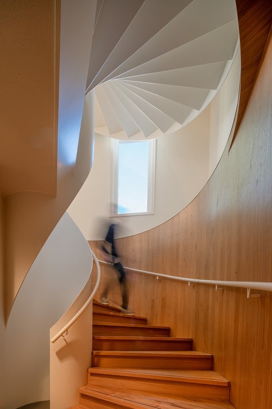 Een brede trap die het gebouw van oost naar west doorboort, verbindt de nieuwe vleugel met de beeldentuin. Deze trap wijst de bezoeker op de bijzonderheden binnen in het gebouw én geeft een prachtig venster op de rivier. De trap fungeert bovendien als tribune voor het publiek, voor voorstellingen in de tuin.