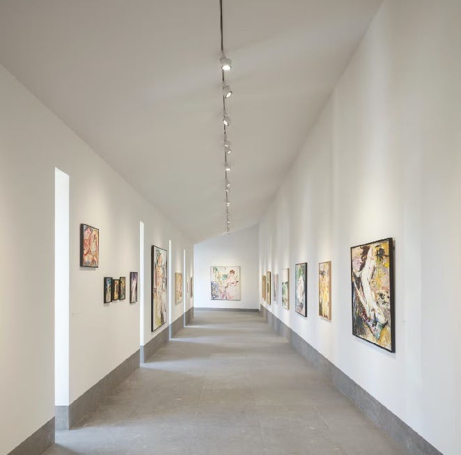 In het museuminterieur laten we elementen uit de oude villa in een geabstraheerde vorm terugkeren, zoals de eikenhouten lambrisering in de tuinkamer en de eveneens eikenhouten omlijstingen van de doorgangen. Samen met de plinten en de doorlopende eiken parketvloer vormen ze een constante in zowel de gerenoveerde als de nieuwe zalen. De nieuwe museumzalen met bovenlichten zijn klassiek in vorm en opzet, aansluitend bij de gerenoveerde tentoonstellingsruimten. Ook de meubels, lampen en expositiesokkels zijn mee-ontworpen.