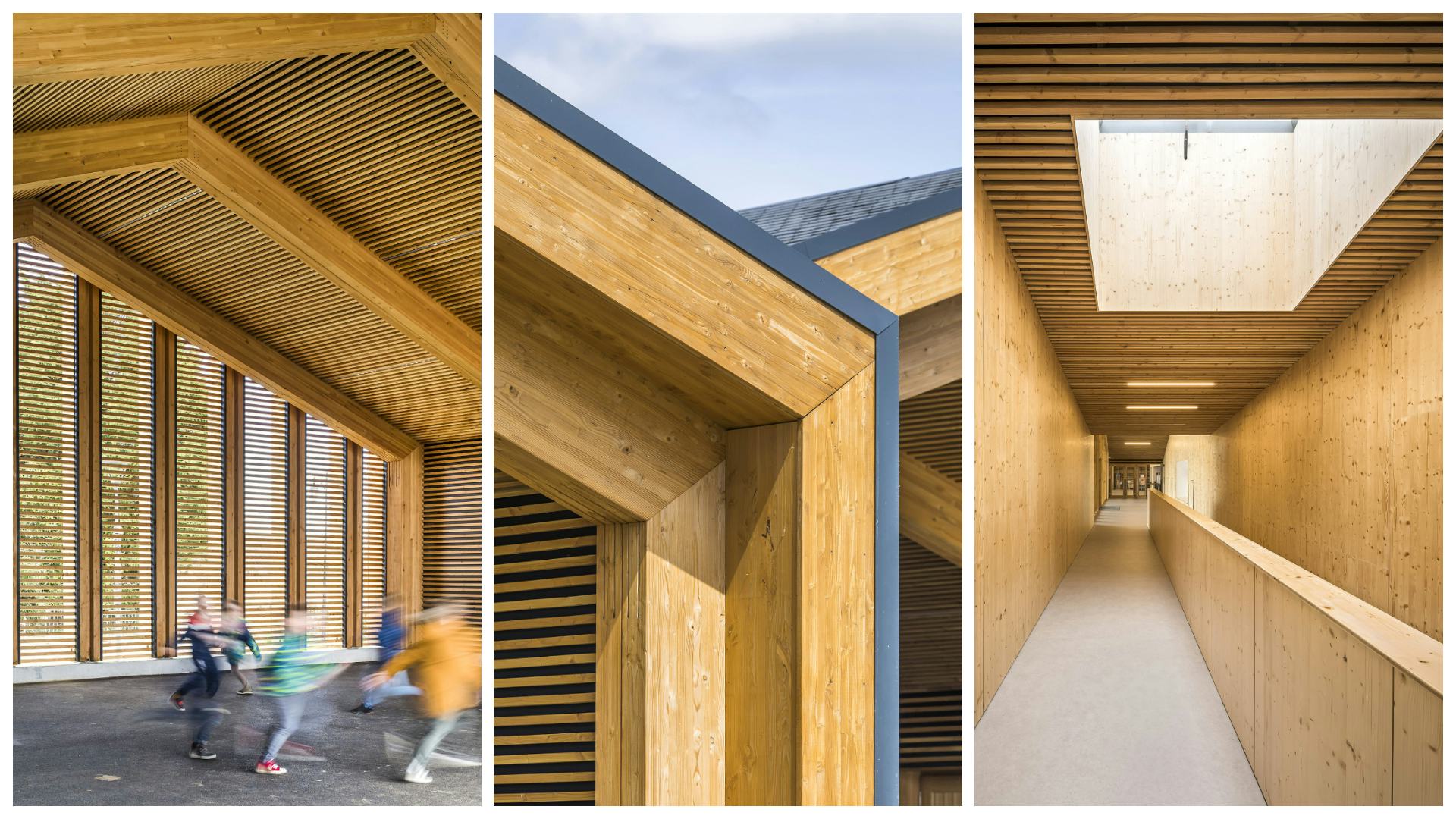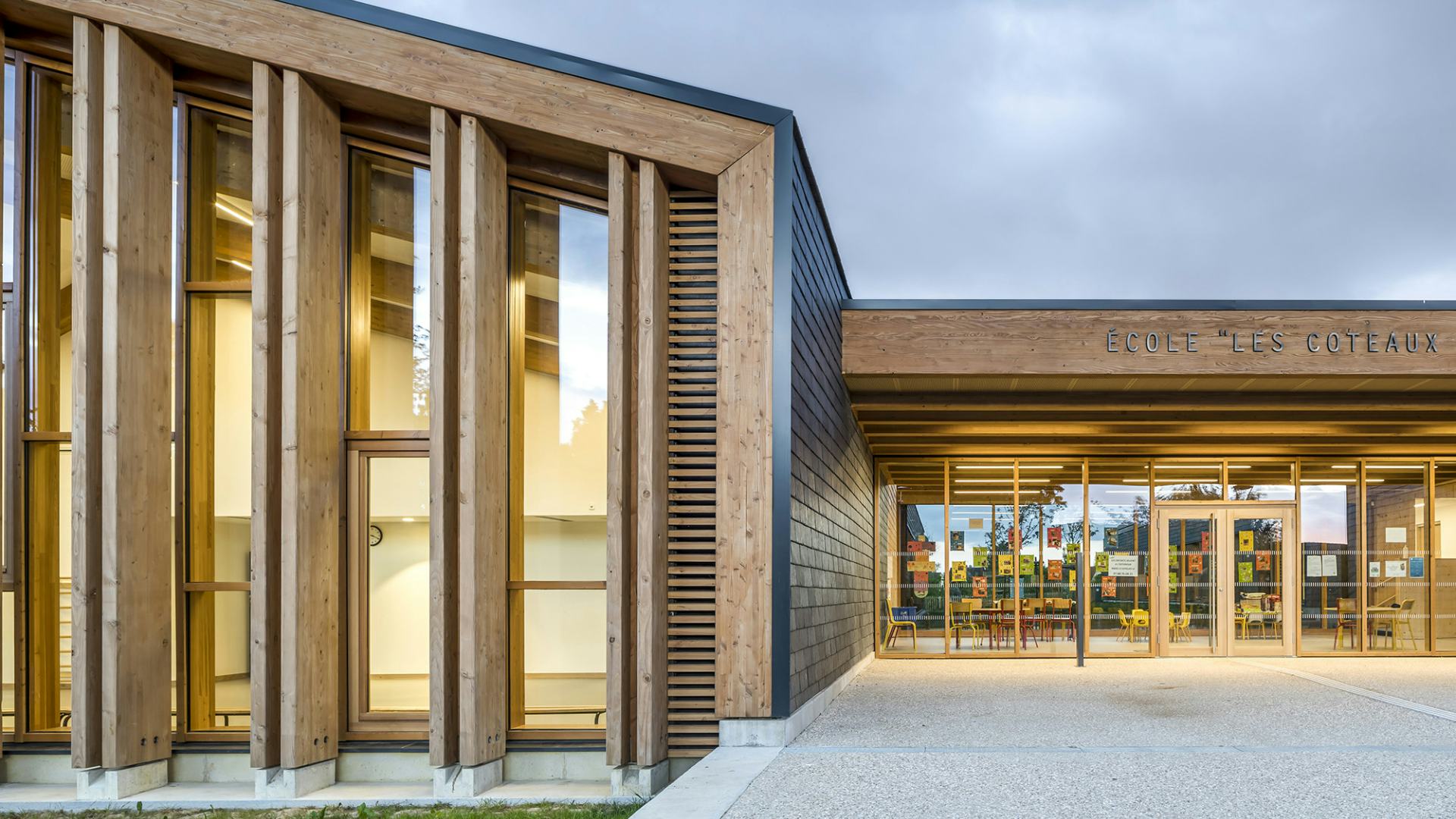 De bouw van de school maakt deel uit van een proces om de ecologische voetafdruk te verkleinen. Het gebruik van hout, leisteen, de integratie van fotovoltaïsche panelen en de afwezigheid van verbruik van fossiele brandstoffen voor de verwarming van de apparatuur maken het mogelijk om de ambitieuze E3C2- en BEPOS-niveaus te bereiken. Ten slotte werd de site volledig gebouwd met lokale materialen en bedrijven gevestigd