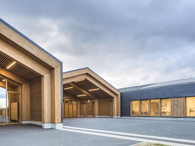 In het ontwerp voor de school is de geschiedenis van de locatie gebruikt voor de materialen en morfologie: het hout van de vakwerkhuizen van het stadscentrum voor de glazen kozijnen en het raamwerk; de leisteen van de klokkentoren en het stadhuis om de gevels en het dak te bekleden en te beschermen.