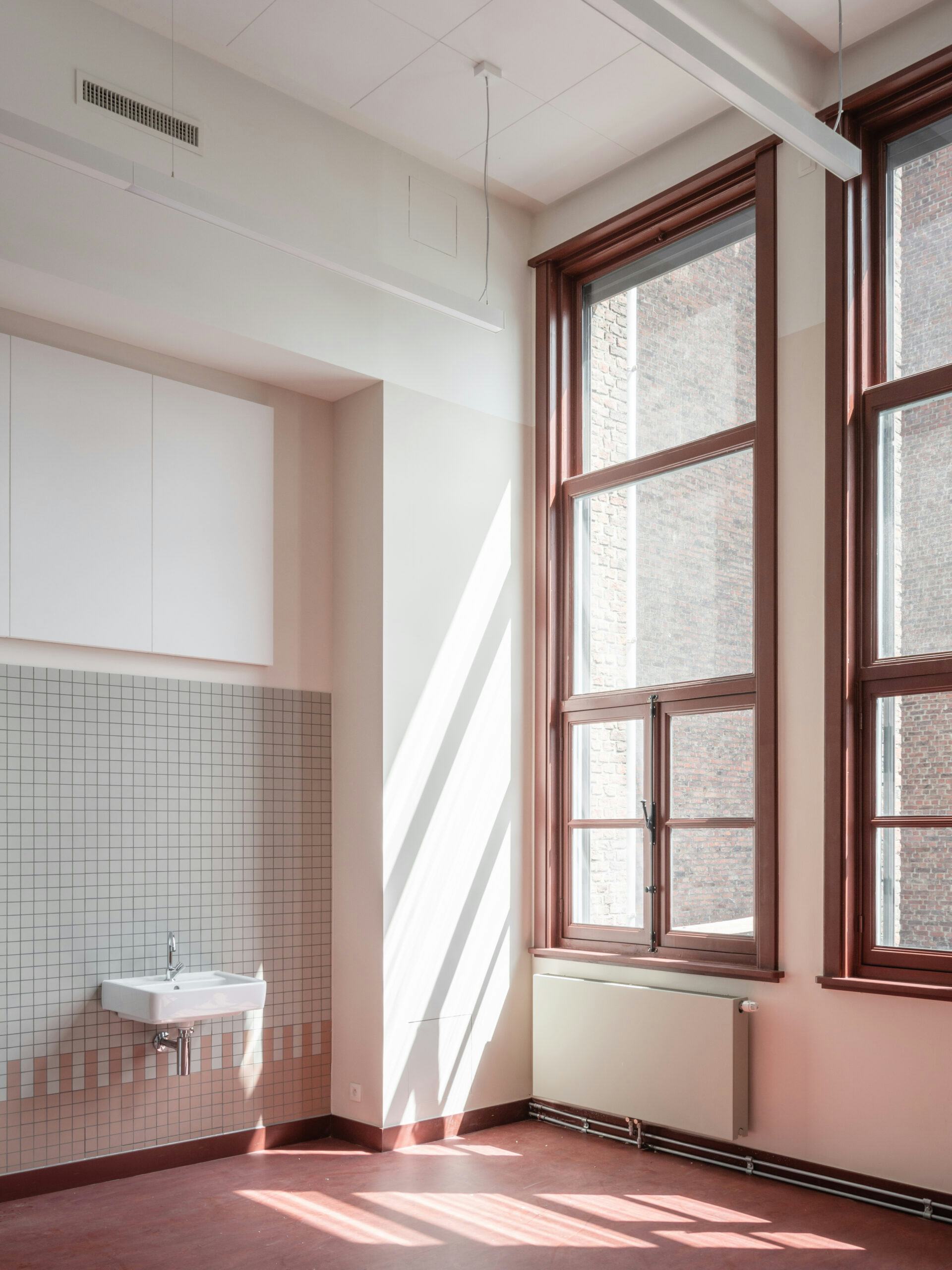 In het ontwerp gaan aspecten als duurzaamheid, flexibiliteit, aanpasbaarheid en monumentenzorg hand in hand. De nieuwbouw is opgevat als een fabrieksgebouw met betonskelet en kappen van akoestische houten kanaalplaten, die in andere gedaante ook in de oudbouw terugkomen. In de oudbouw is de bestaande constructie opgewaardeerd en hergebruikt. De nieuwe toegepaste materialen zoals massief hout en keramisch tegelwerk in verschillende patronen spelen een beeldbepalende rol in interieur en exterieur.