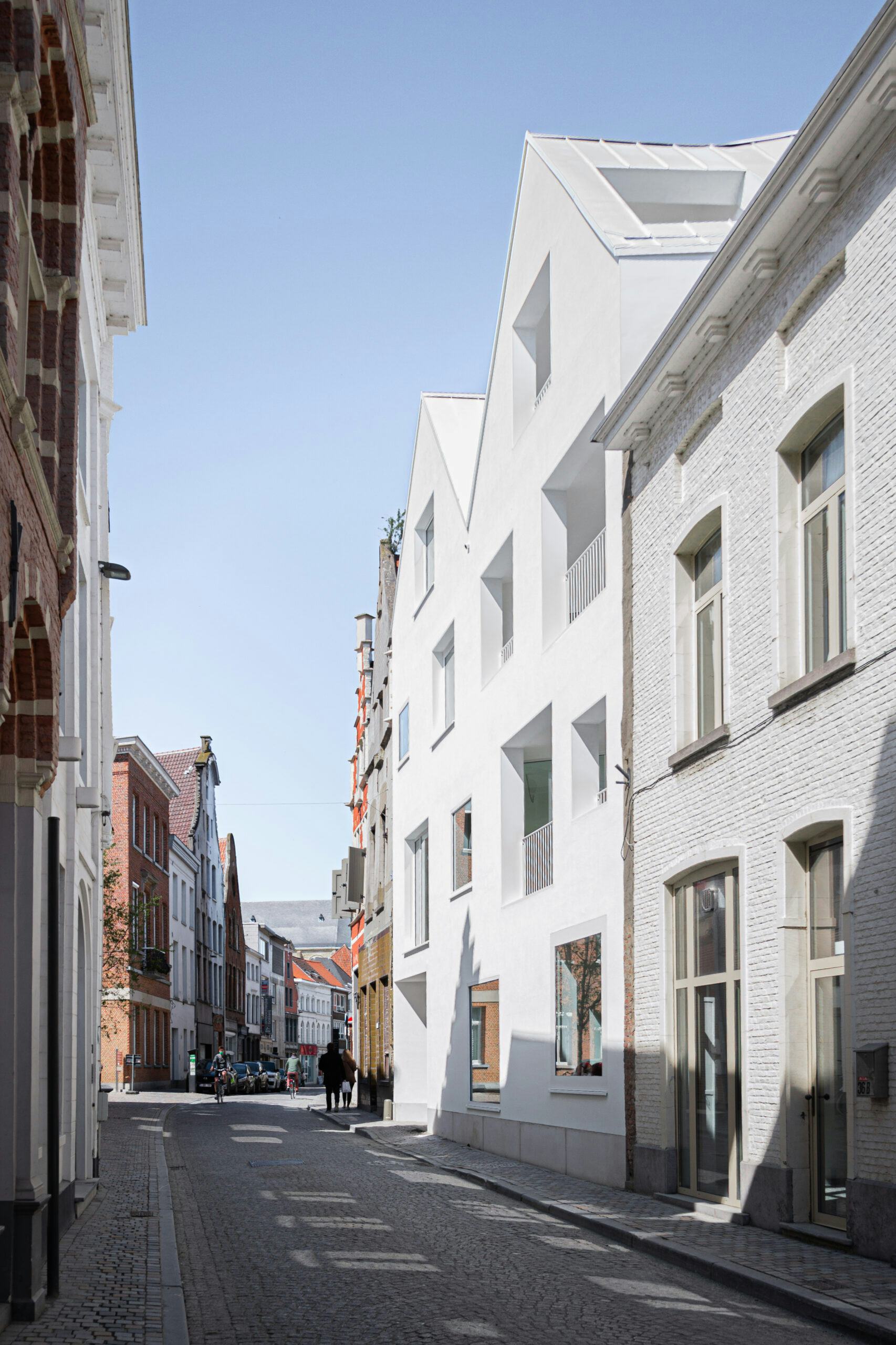 De plek is strategisch gelegen in de binnenstad langsheen een historische invalsweg, bepaald door een amalgaan van lijstgevels uit de achttiende en negentiende eeuw en karakteristieke gevels uit diverse periodes. Het gebouw is een ingetogen abstractie interpretatie van de twee historische diephuizen met trapgevels aan de overkant van de straat. Alle gevelopeningen van het gebouw, zowel interieur als exterieur, zijn vierkanten en ‘framen’ als het ware de historische skyline van Mechelen als een foto-opname.