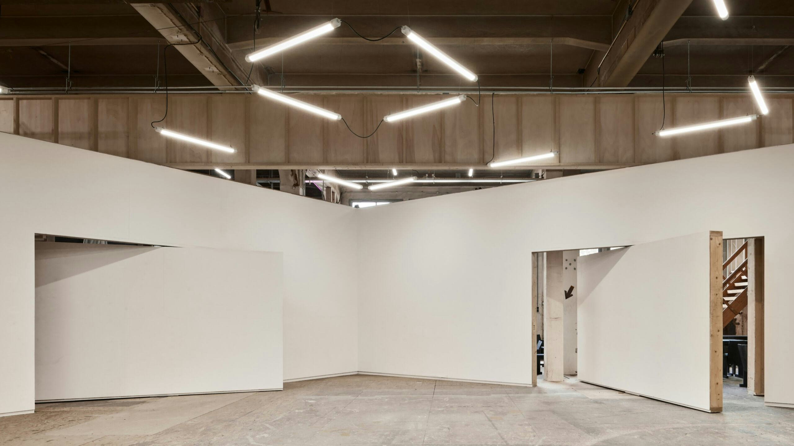 Het ontwerp van de transformatie steekt als een reeks diagonale houten wanden dwars door de voormalige fabriekshal. Twee lange wanden scheiden privé studio’s van gemeenschappelijke ruimtes; tussen de wanden creëren twee gedraaide kubussen afgeschermde hoeken waar presentaties en tentoonstellingen gehouden kunnen worden. De onafgewerkte houten constructie is als tussenruimtes zichtbaar gelaten. Een verfijnde afwerking aan de binnenzijde maakt het geschikt voor presentaties en tentoonstellingen.