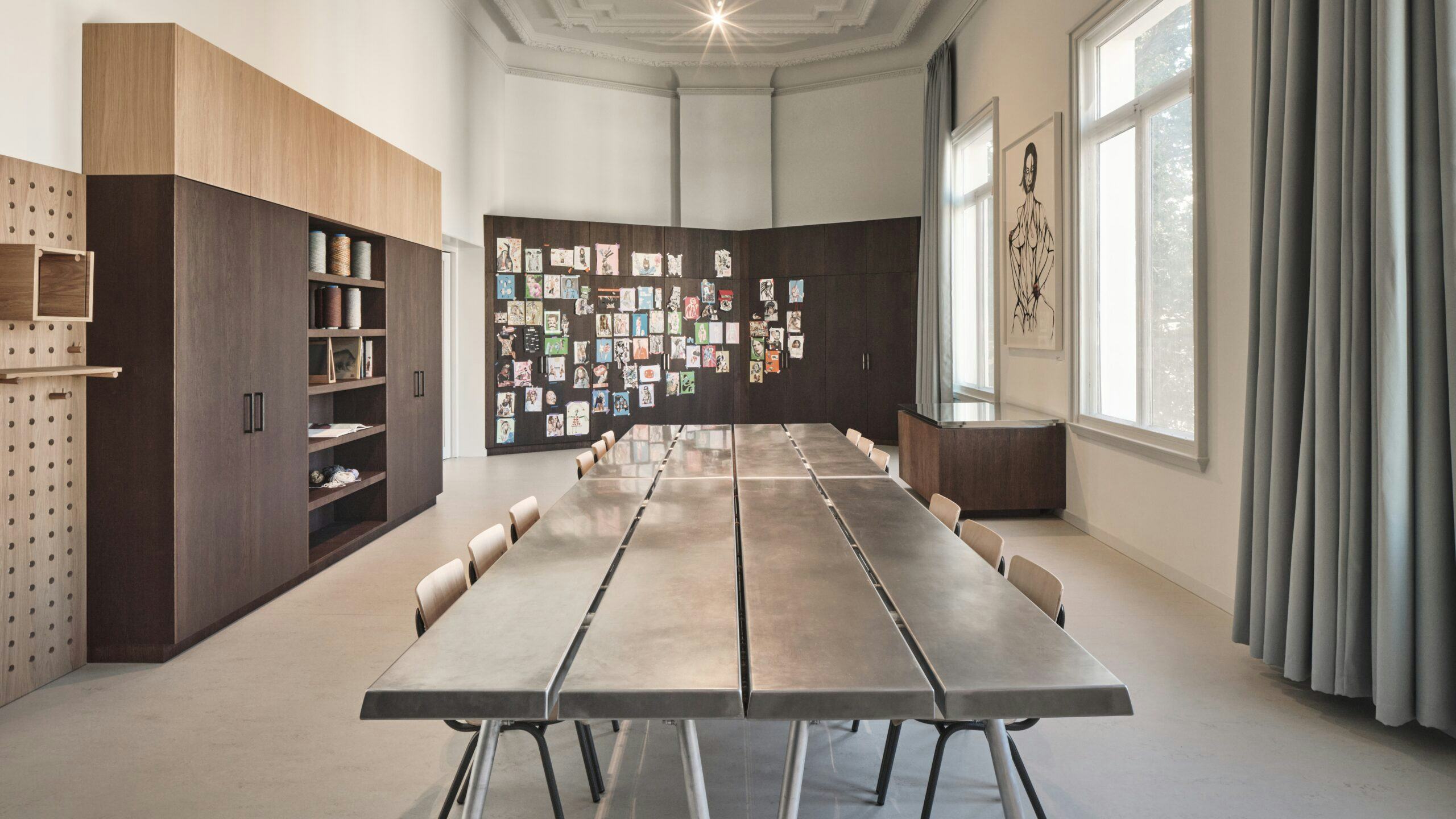 Studio Modijefsky creëerde een tijdloos design met ruwe materialen, die over de jaren heen alleen maar mooier worden. Geglazuurde terrazzo tegels op de vloer, Marmer en ornamenten voor de bar en torens van messing en brons. De stoelen in het café zijn van TON, een tijdloos, sterk hout van hoge kwaliteit. De 'New aluminium folding table' is van Piet Hein Eek. Het interieur kwam tot stand in samenwerking met Rotsbouw en Hardeman.