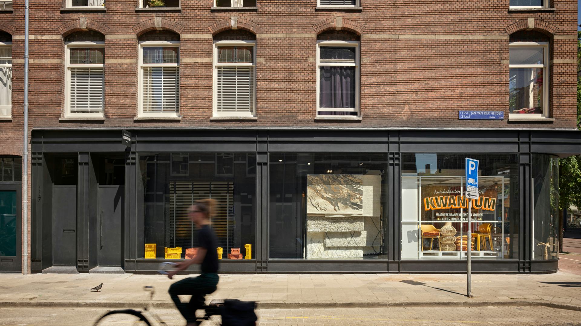 Om de winkels zo aantrekkelijk mogelijk te maken zijn hoge plafonds aangebracht met lichtstraten achter in de ruimte. Na vele verbouwingen in honderd jaar waren er geen oorspronkelijke winkelpuien meer aanwezig. Op basis van archiefstudie hebben we de karakteristieke 19e -eeuwse gevelritmiek teruggebracht. Het grafische patroon van oorspronkelijk aanwezige glas-in-lood bovenlichten is verwerkt in een modern gevelontwerp en doorgevoerd tot in het kleinste detail van de deurgrepen.