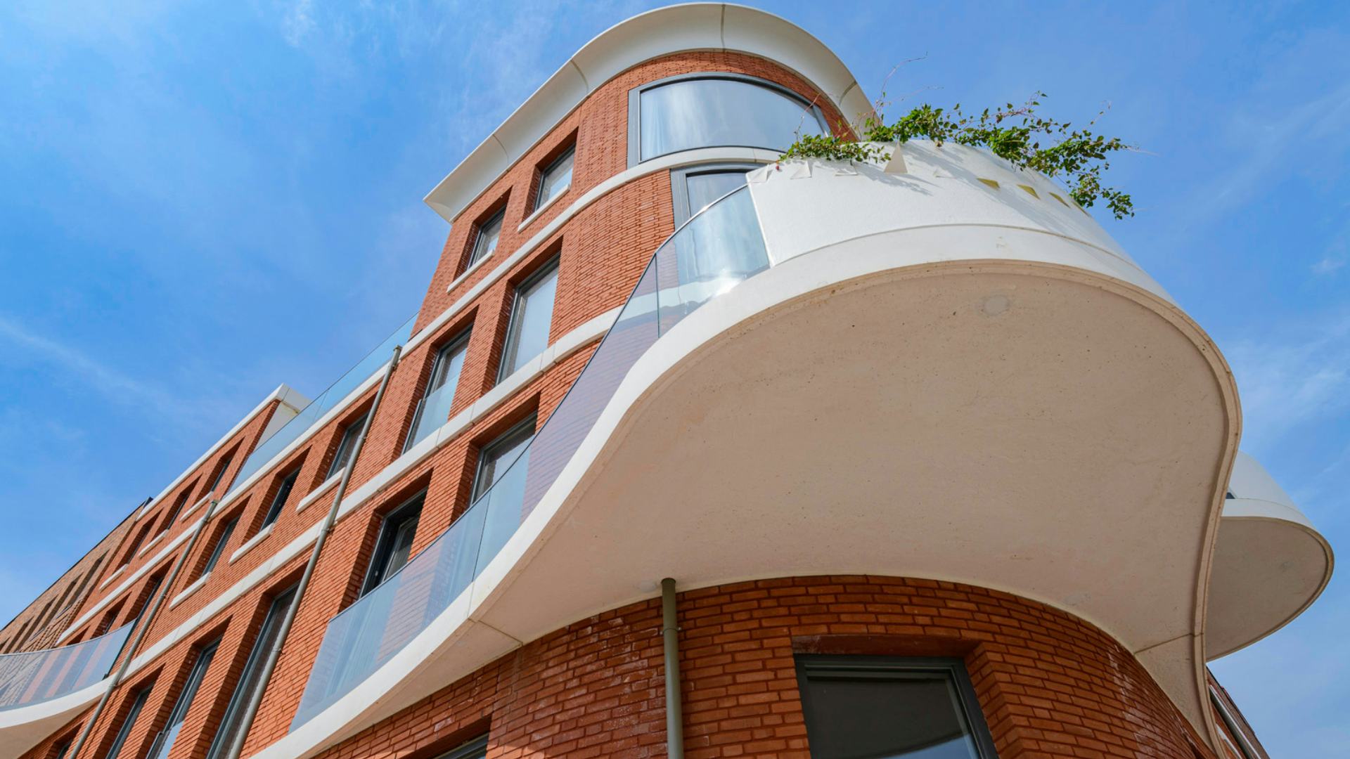 Waar vroeger man-uren goedkoop waren en materiaal duur is dat nu precies andersom. Met minder tijdrovende prefab beton- baksteentechniek hebben we uitstulpende plantenbakken en erkers in de gevels verwerkt, architraven gemaakt die bijdragen aan het gevarieerde beeld. Alle gebouwen zijn in verschillende nuances geelbruine/roodbruine steen uitgevoerd in meerdere formaten, tinten en metselwerkverbanden met een hoge plint van natuursteen waardoor de samenhang van het geheel geborgd wordt.
