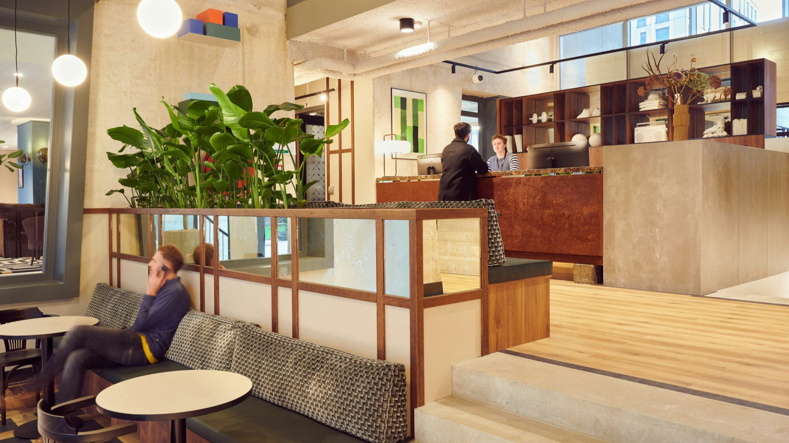 Voor deze high traffic locatie hebben we gekozen voor kwalitatief hoogwaardige afwerkingen die lang mee gaan. Pvc vloeren, wollen tapijten, maar ook oude materialen zoals bielzen.