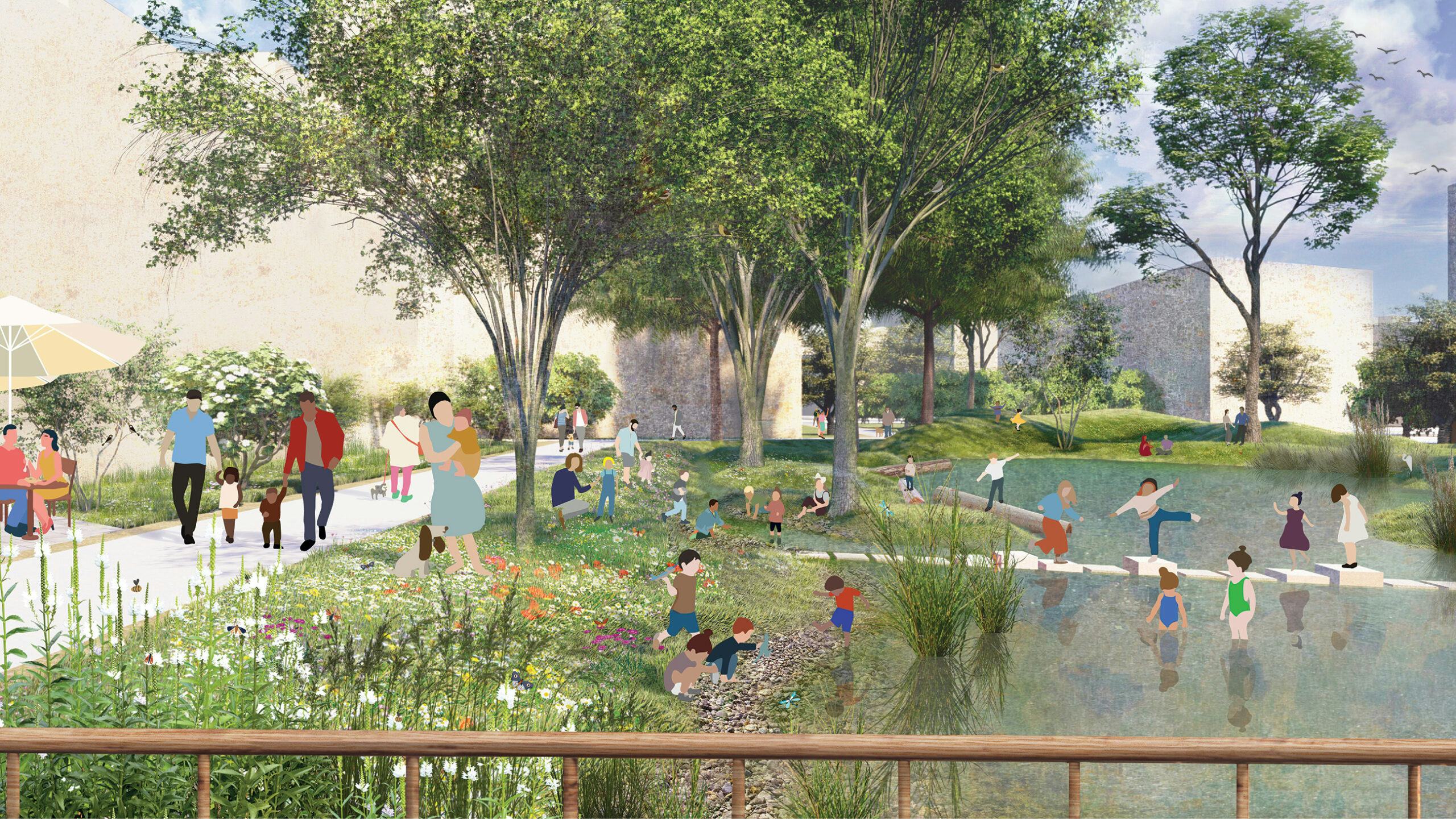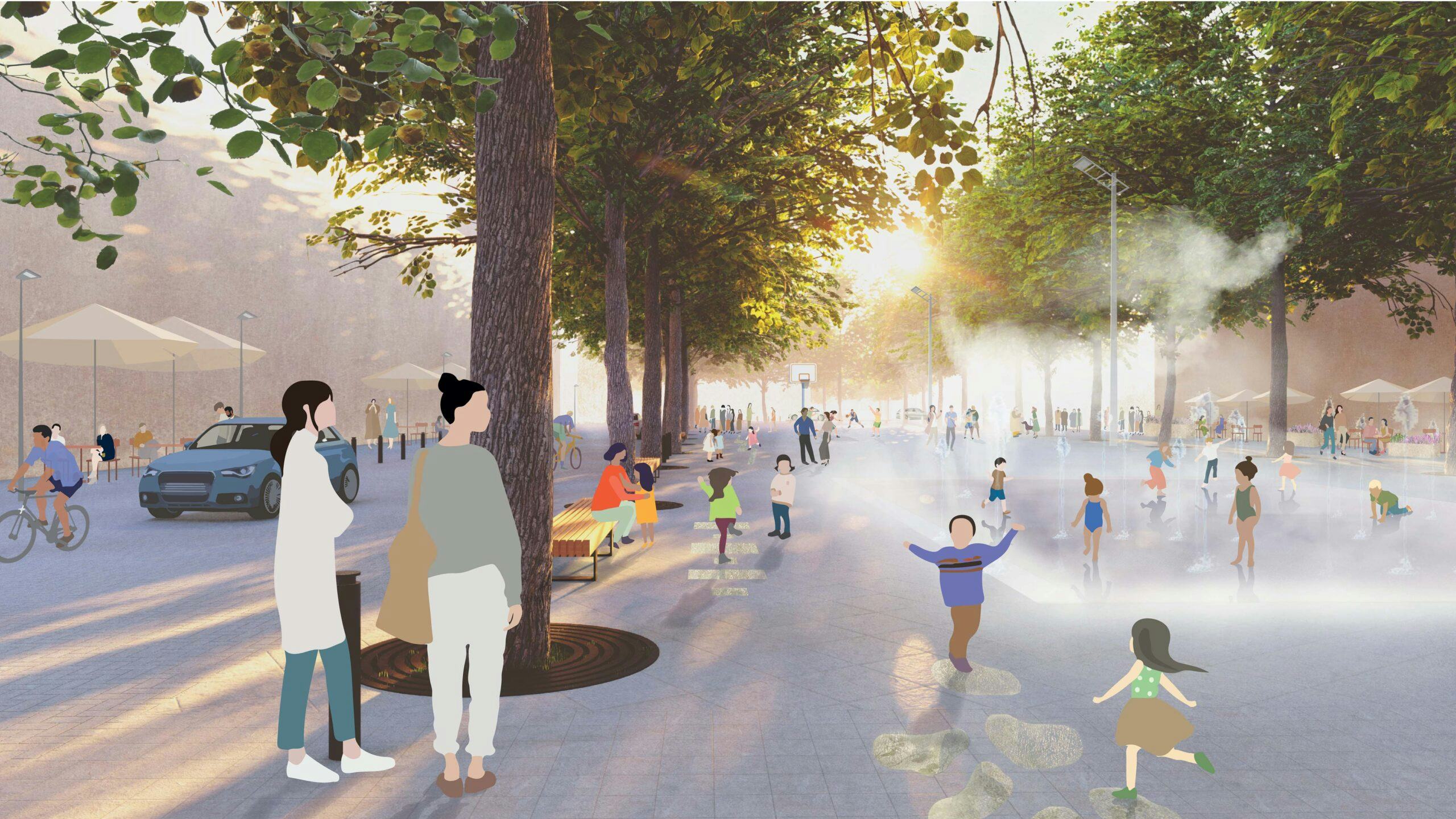 Sport- en speelplekken maar ook kunst in de openbare ruimte liggen verspreid in de wijk. Daarnaast is er ook veel ruimte voor rust en ontspanning. Naast de bestaande bomen worden er veel nieuwe bomen geplant. Met de aanleg van bijna vier hectare groene publieke ruimte kunnen de bewoners dagelijks ‘echte natuur’ in hun wijk ervaren. Tegelijkertijd wordt het water op verschillende plekken gebruikt als speelelement. Op die manier gaan klimaatadaptatie en sociale cohesie hand in hand.