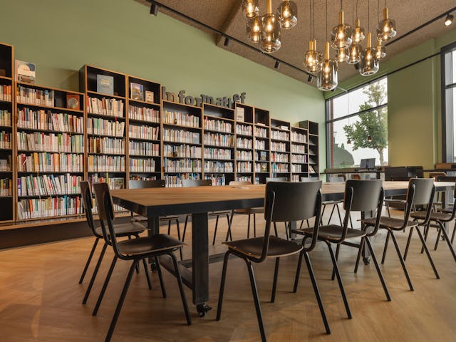 De nieuwe Uithoornse bibliotheek wordt een open en vrij toegankelijke ontmoetingsplek, een culturele hotspot. Een ongedwongen interieur legt hiervoor een uitnodigende basis.