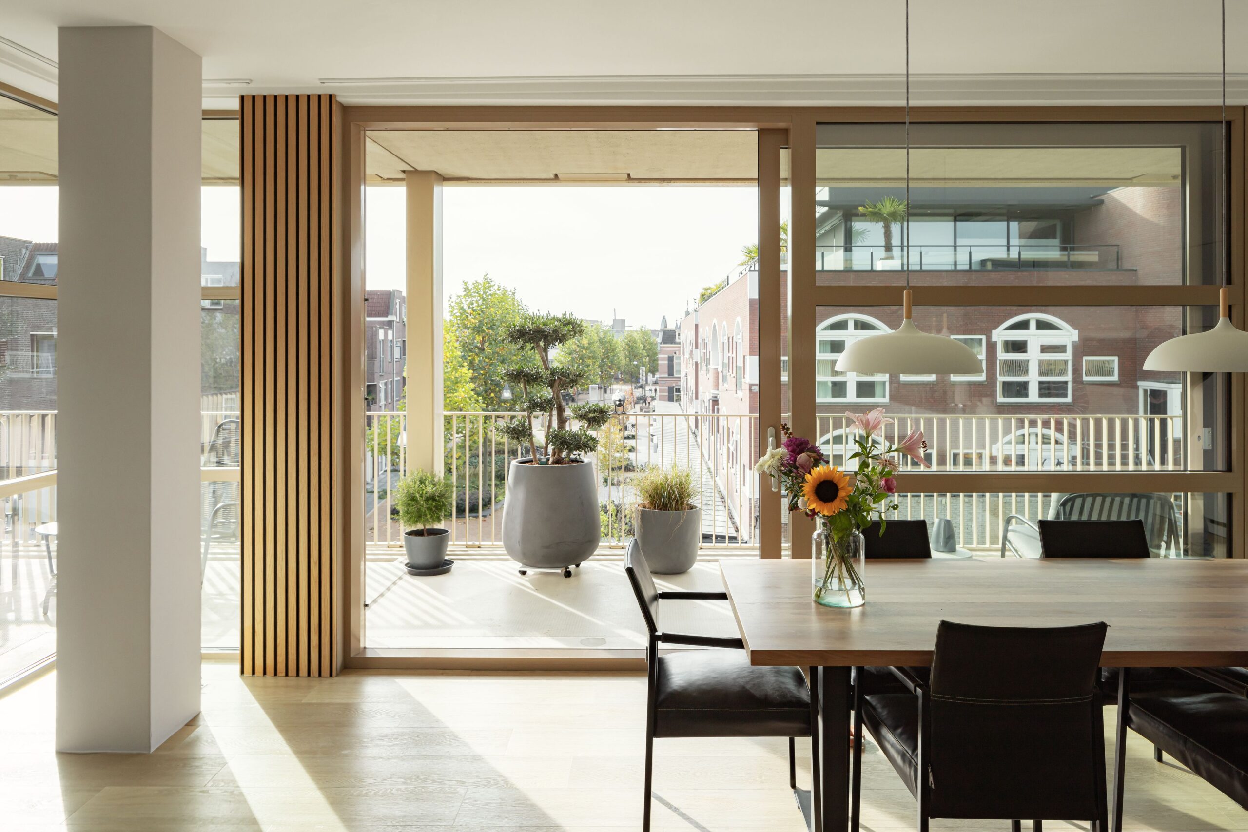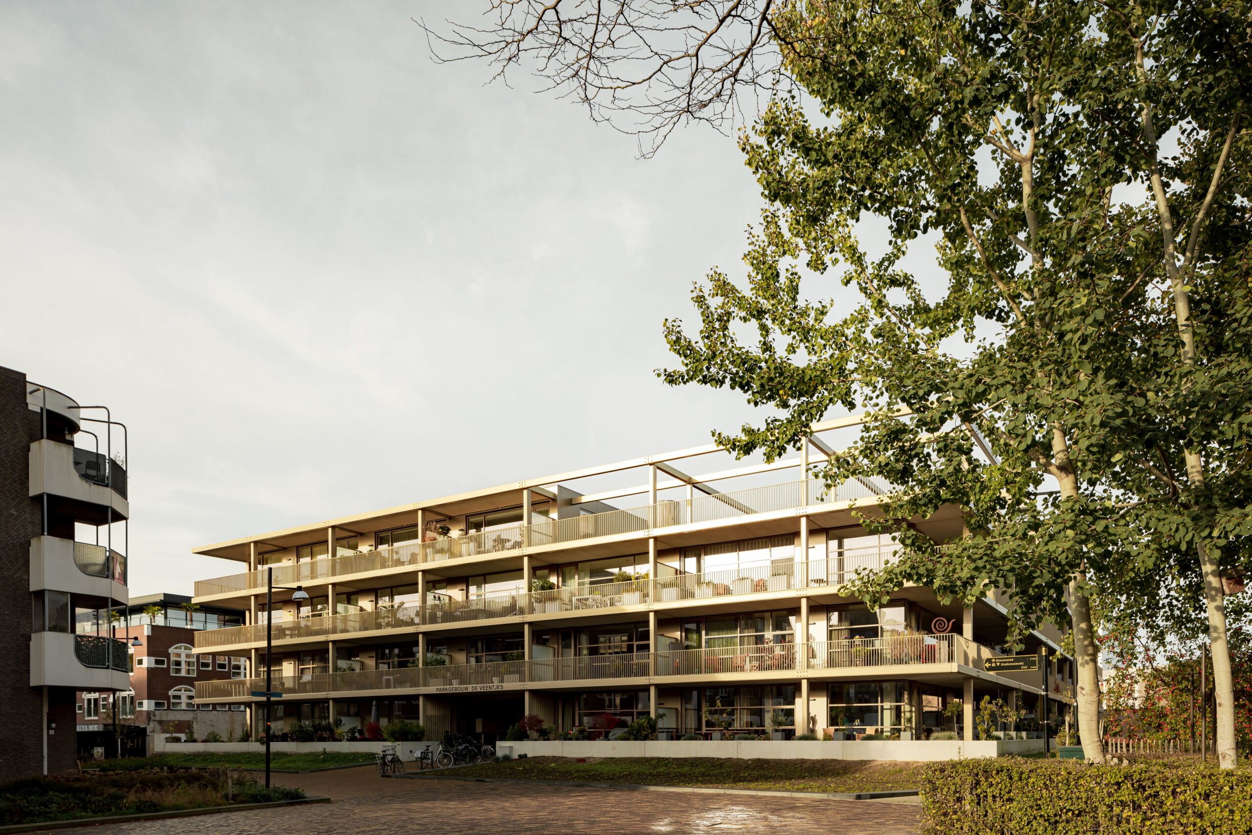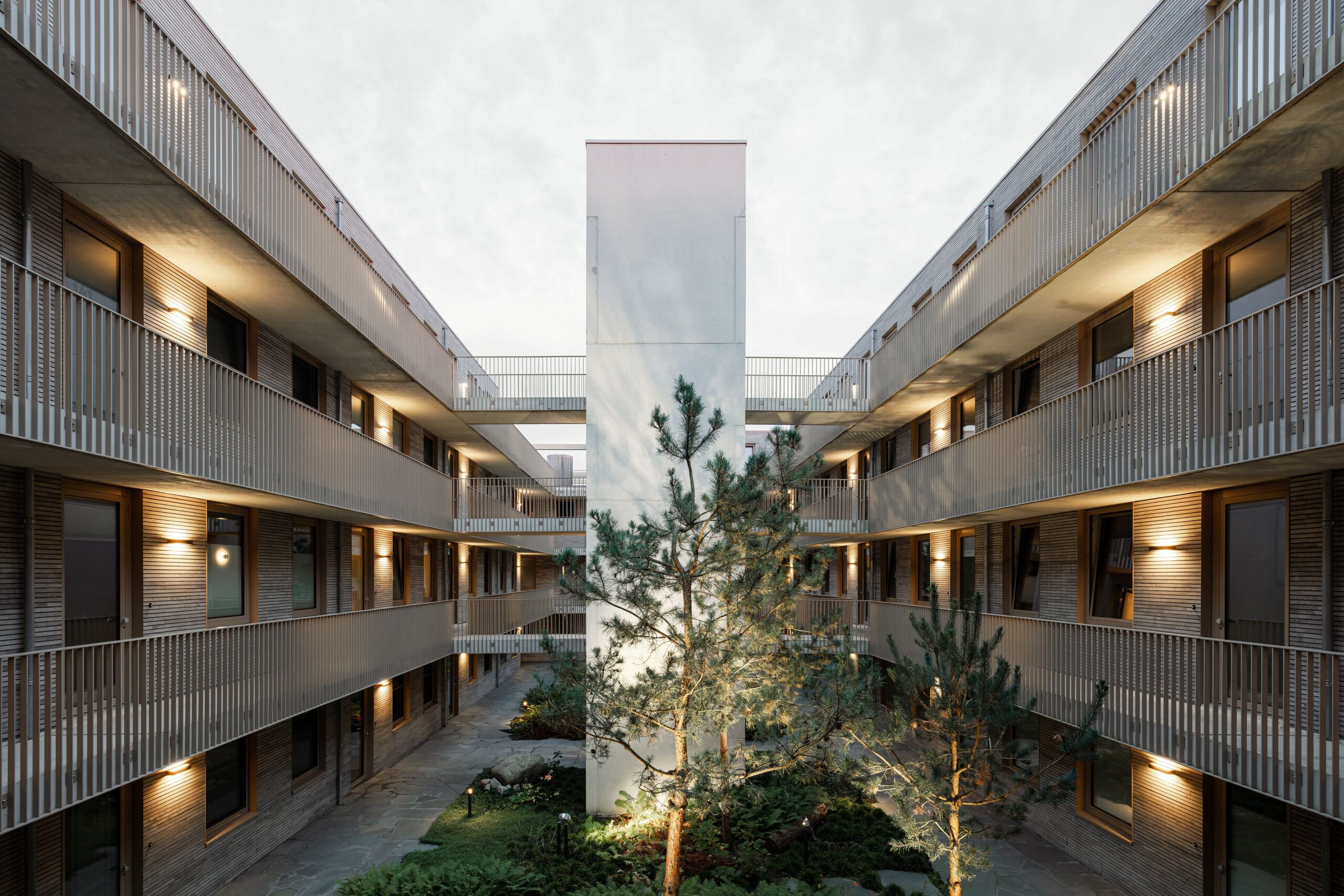 De twee entrees die het gebouw ontsluiten komen uit op het atrium waar de galerijen aan liggen en het daglicht diep het gebouw binnen komt. De toegangsdeuren zijn in één oogopslag in beeld en geeft de bewoners zijn geborgenheid en overzicht. Het gebouw ontleent zijn kracht aan de heldere structuuropbouw, het gebruik van zuivere en mooie materialen en het groen karakter door de begroeiing in en rondom het gebouw.