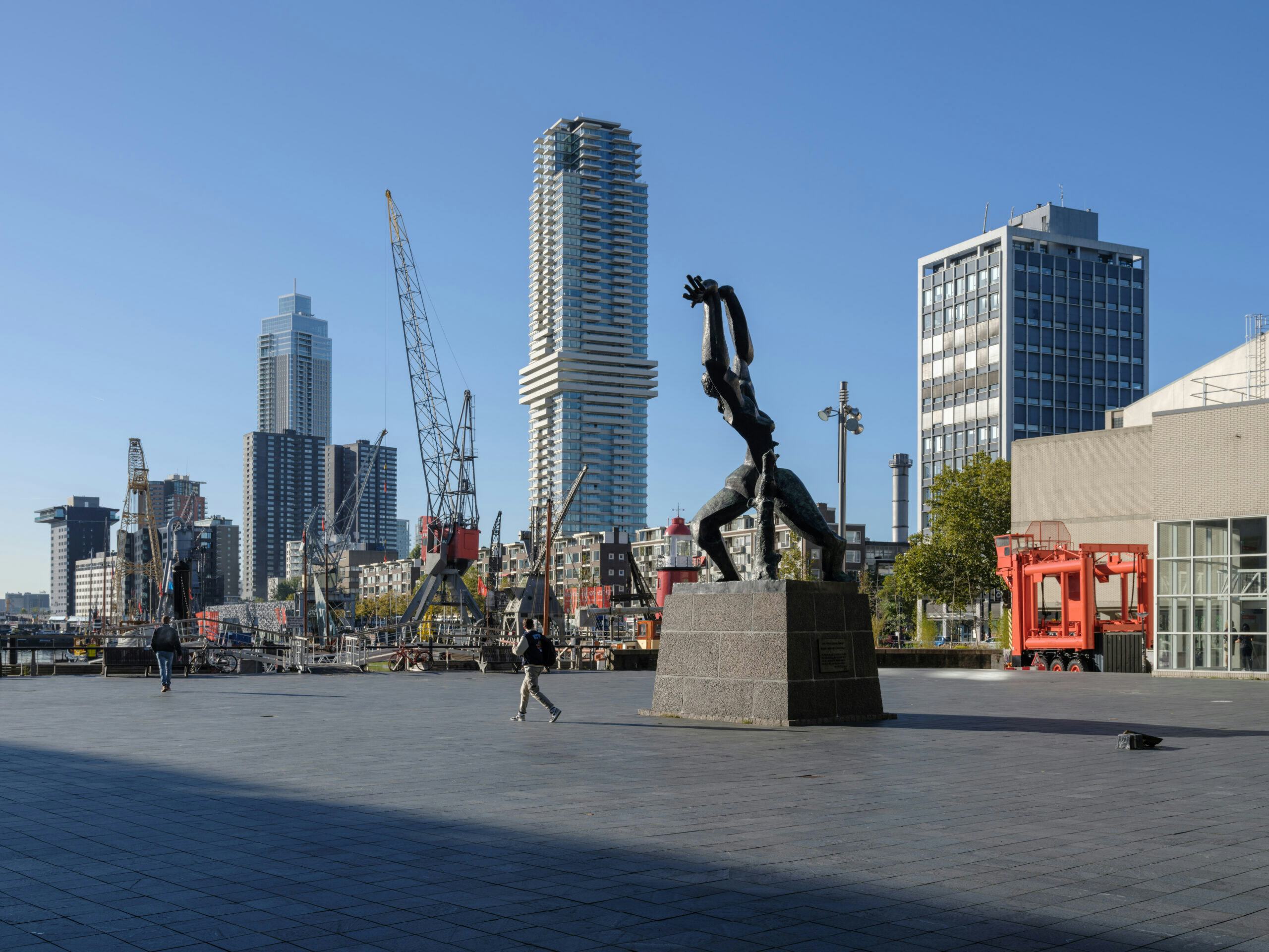 Ontwerpend is er gekozen voor een toren die past in het fijne stadsweefsel op de grond en op elke hoogte betekenis heeft: De verbinding tussen stad en de lucht verloopt door de stapeling van de vijftig woonlagen van luchtig op straat naar zwaar in het midden en eindigt weer luchtig in de wolken. Dit wordt bereikt door het gradueel dikker worden van de balkons, de toepassing van panoramische bandramen en de zogenaamde ‘weefgevel’, welke verwijst naar de wederopbouwgeschiedenis van Rotterdam. Het bijzondere middendeel vormt het zwaartepunt van de toren en noemen we de middenkroon. Dit element bepaalt het silhouet en biedt als equivalent van de penthouses vier verdiepingen met vier fantastische hoekappartementen met elk een balkon van 72m2.