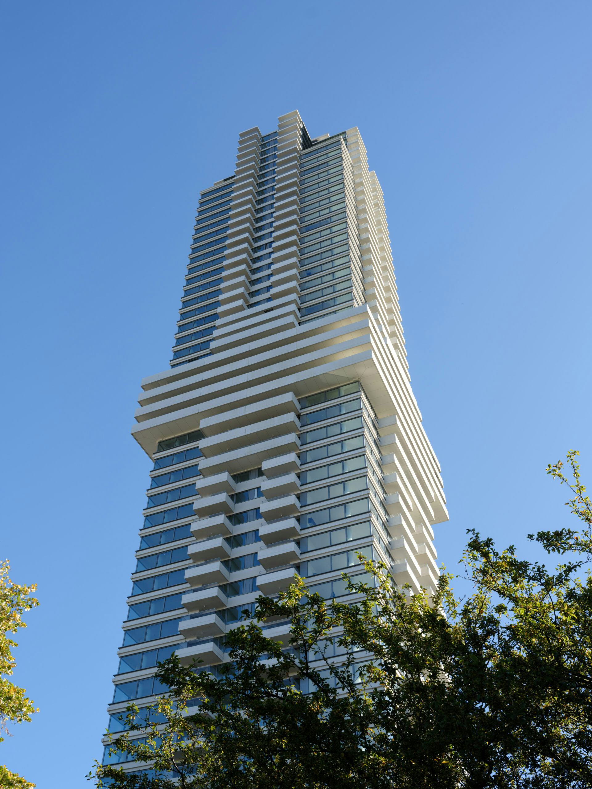V8 Architects werd in 2016 gevraagd een 150 meter hoge woontoren met een opvallend en functioneel relevant silhouet te ontwerpen vóórdat de aanscherping van bouwwetgeving in 2017 de ontwikkelpotentie van deze locatie verder zou vertragen. Een intensieve samenwerking met opdrachtgever De Vijf Heren leidde tot een juiste balans tussen constructie, vorm en woongenot waarbij elke centimeter telt aan de kostenkant maar ook aan de opbrengstenkant. Het resultaat is een functioneel en technische puzzel op het scherpst van de snede.