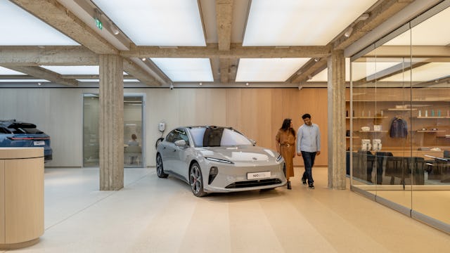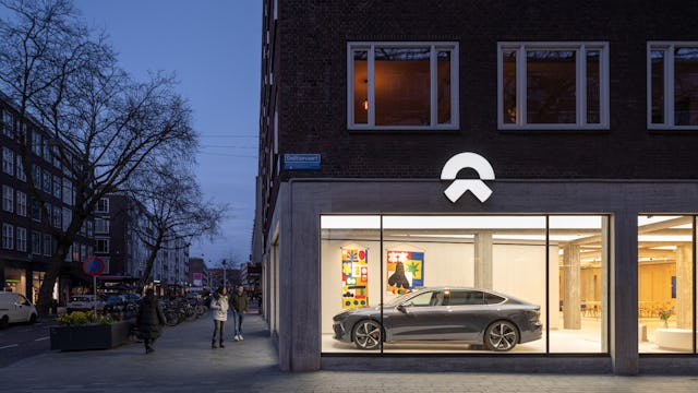 Het 650 m2 tellende NIO House Rotterdam bevindt zich in een hoekpand tussen cafés, interieur- en kledingwinkels, direct langs de Delftsevaart. De gevel aan straatzijde biedt de mogelijkheid eenaantal auto’s te tonen aan bezoekers. De gevel aan de zijkant van het pand kan grotendeels worden geopend dankzij de schuiframen. Zo wordt het café verlengd, is er meer interactie tussen binnen en buiten en is Rotterdam op mooie dagen een fraai café rijker. Op de hoek van het pand wordt straks één speciale auto tentoongesteld, een podium dat van de rest van de ruimte is afgeschermd door een muur waarop werk van verschillende kunstenaars wordt getoond.
