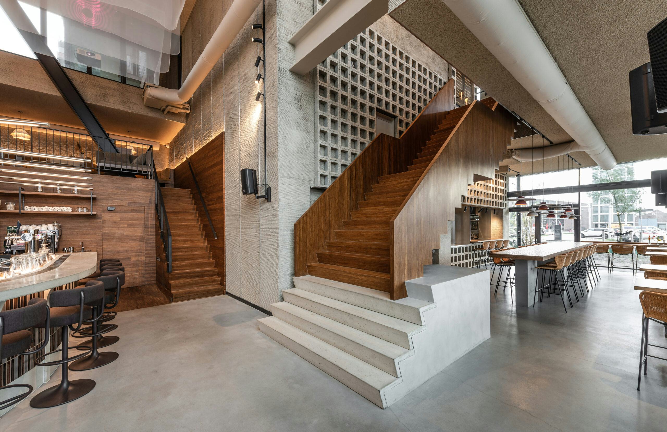 Ontwerp een kosmopolitisch, creatief, mondiaal en toch Amsterdams restaurant dat gastvrijheid naar een hoger niveau tilt. Het restaurant, de bar en de lounge is de hele dag geopend en is representatief van de locatie: een bruisende metropool in wording aan de rauwe rand van de stad. We ambitieren om de place to be te worden waar mensen de hele nacht uitgaan zonder dansvloer, in een sociaal, energiek en ruim opgezet restaurant.