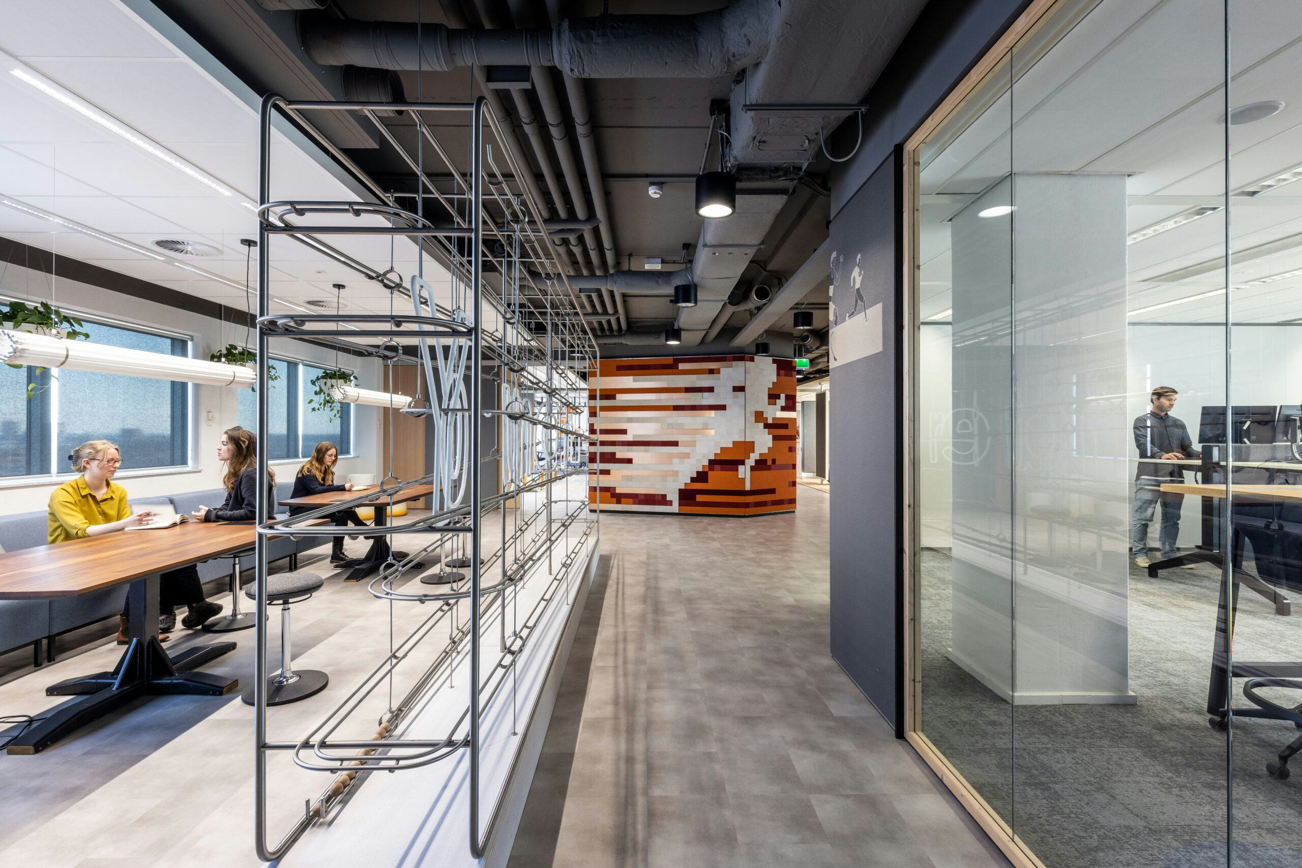In de post-COVID wereld wordt er veel vaker thuisgewerkt en gaan medewerkers naar kantoor om collega's en relaties te ontmoeten. Dit geldt ook voor financiële dienstverlener NN. In de iconische brug over de A12 is een Event Space gerealiseerd waar zowel medewerkers als genodigden op belangrijke momenten samen kunnen komen.