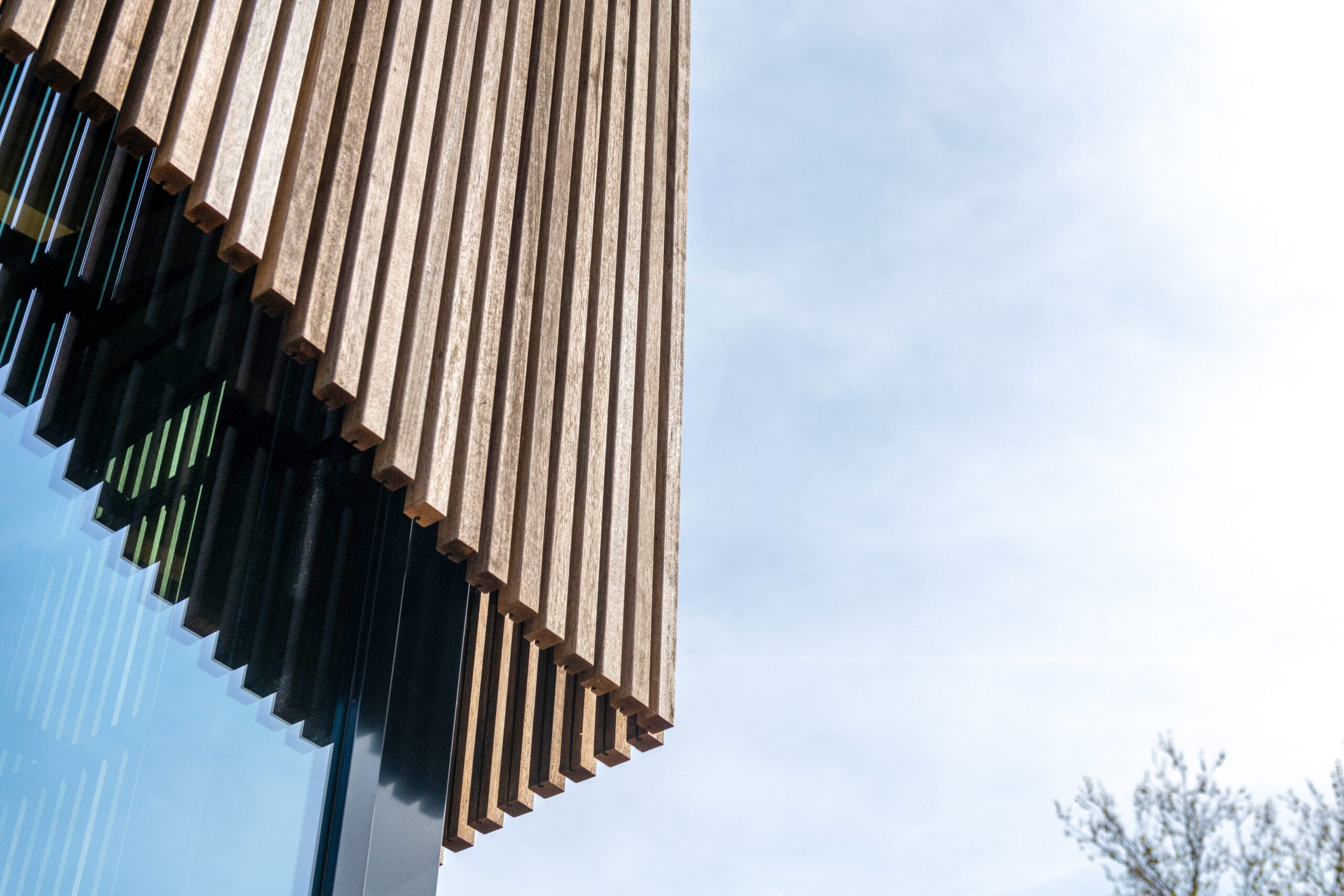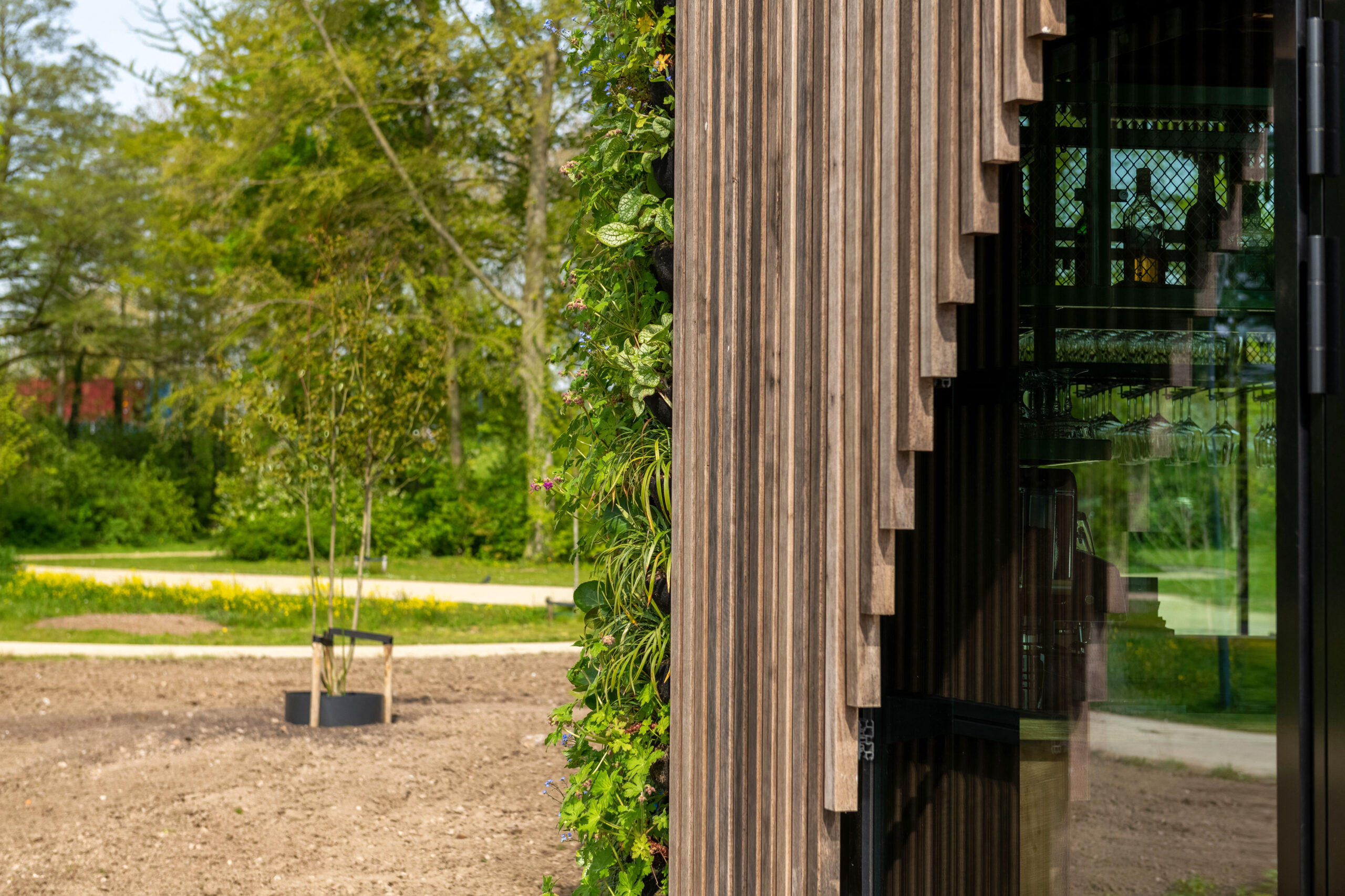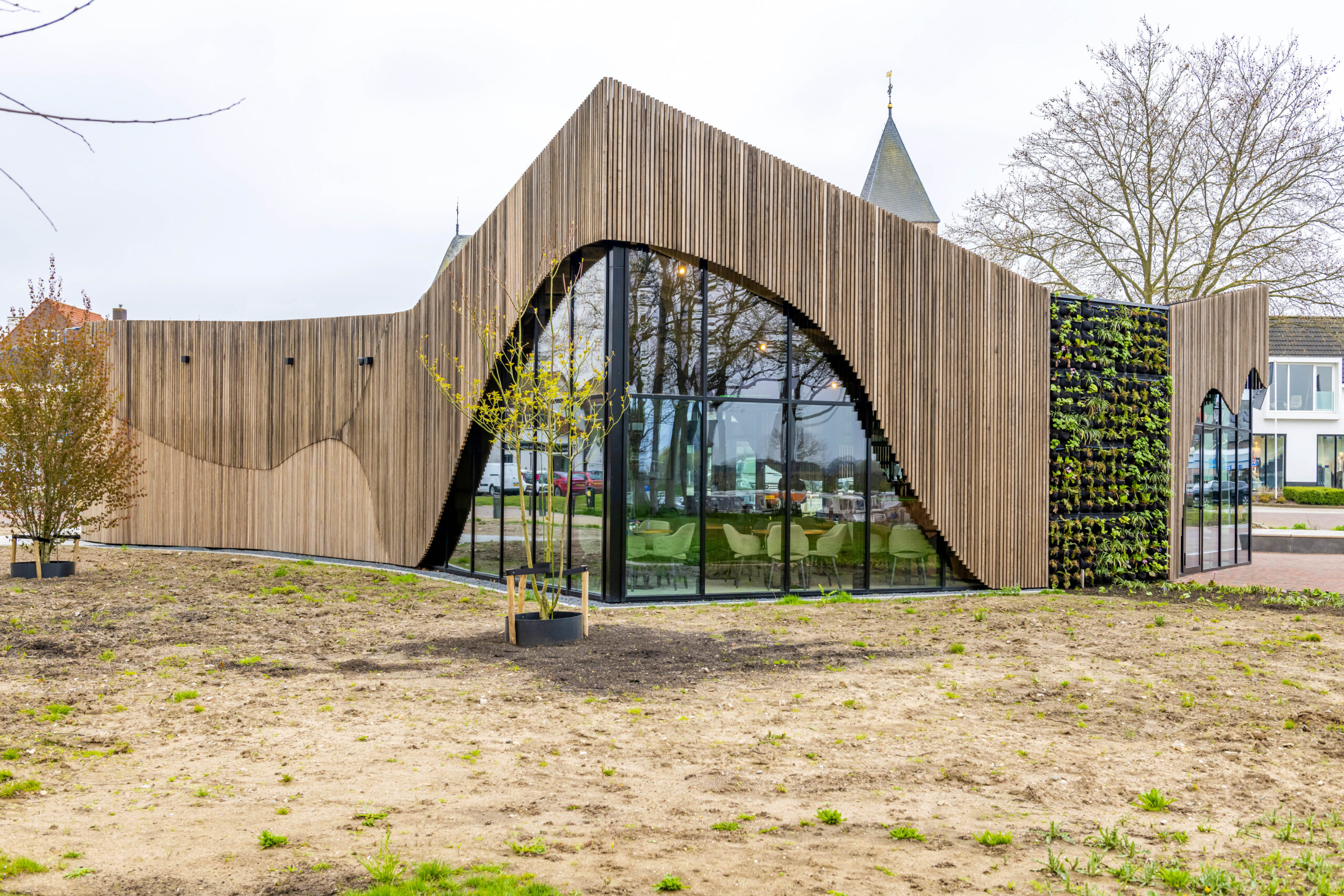 Door de vormgeving, het materiaalgebruik en de positionering gaat het gebouw een natuurlijke relatie aan met alle omliggende elementen.De niet grondgebonden groene gevel en de groene dakstrook over het gebouw die doorloopt in het aangrenzende park, hebben naast een esthetische ook duurzame functie. Waterberging, flora en fauna zijn hier allen bij gebaat. Uniek is het door het golvende lijnenspel omkaderde weidse uitzicht dat zo is uitgekiend dat het ook dienst doet als zonwering.