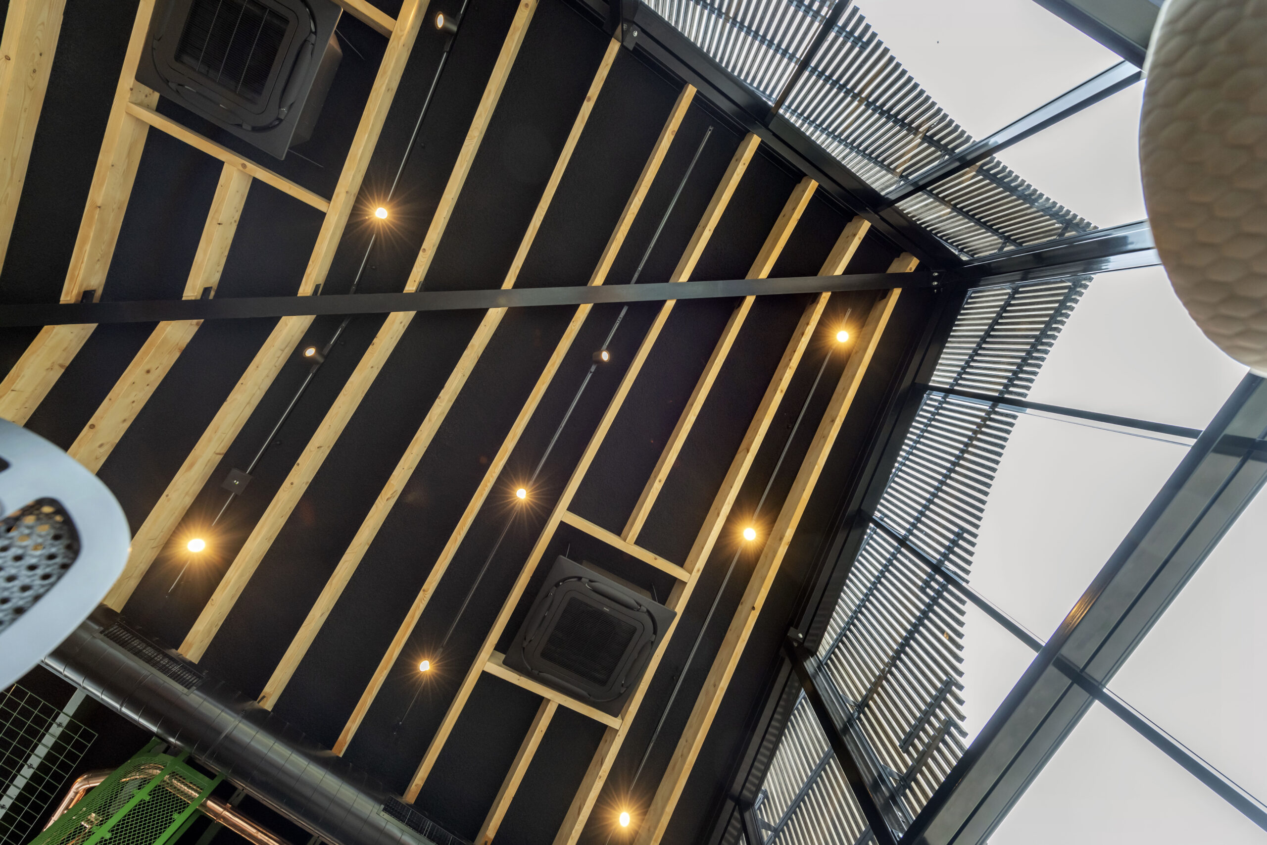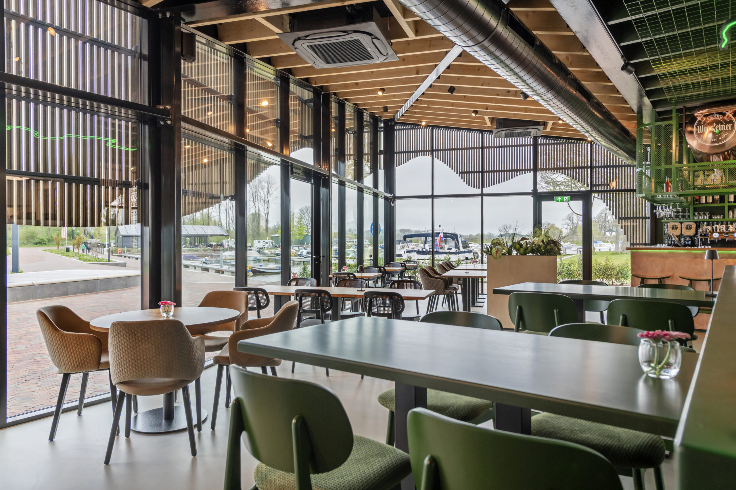 Elementen van de Linge zijn op een subtiele manier verwerkt in het interieur welke een warme en moderne uitstraling heeft. De focus ligt op het prachtige uitzicht en het golvende lijnenspel voor de gevel. Door de uitgekiende indeling ontstaat een organische zonering waardoor het gebouw vanuit elke hoek een andere beleving heeft. Het gebouw is verfijnd industrieel met in het interieur de installaties in het zicht maar rommelige leidingen zorgvuldig weggewerkt over het dak. De grote installaties, zoals de warmtepomp en koelmachines zijn weggestopt in een ‘onzichtbare’ buitenruimte. De gevel is hier zorgvuldig omheen gevouwen. Alle aansluitingen en details zijn zorgvuldig uitgelijnd en vormgegeven met oog voor precisie.