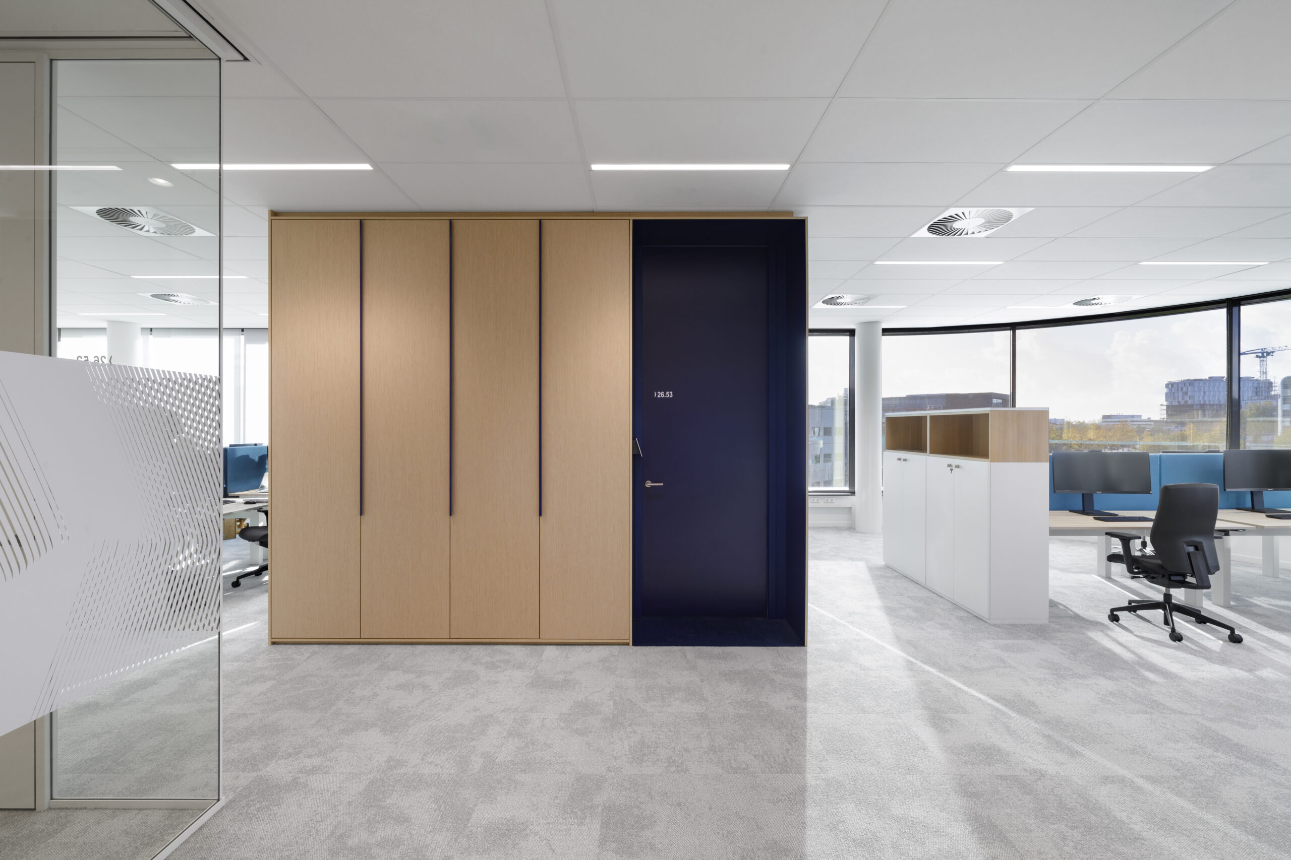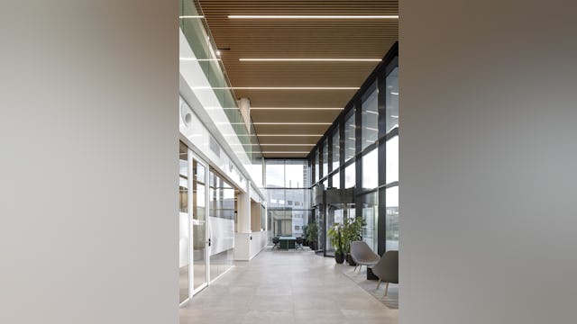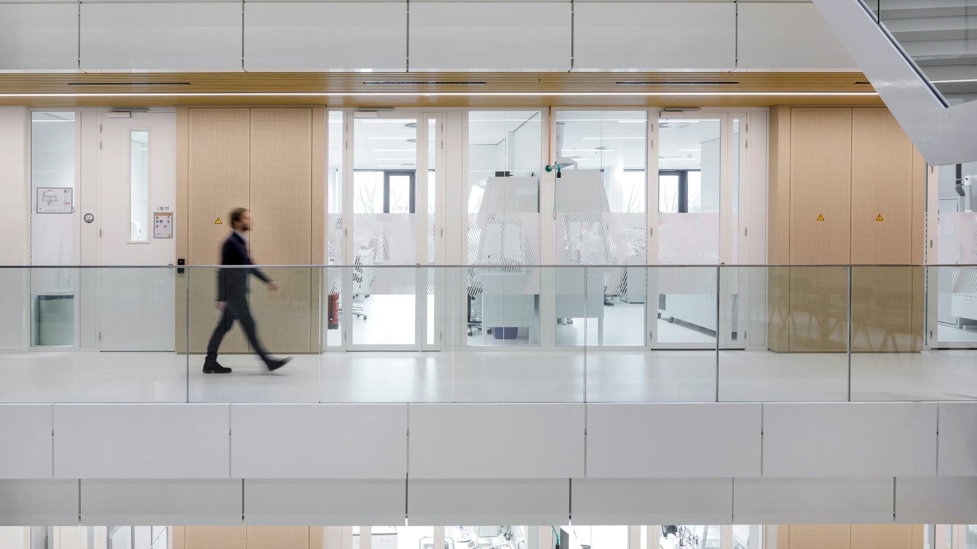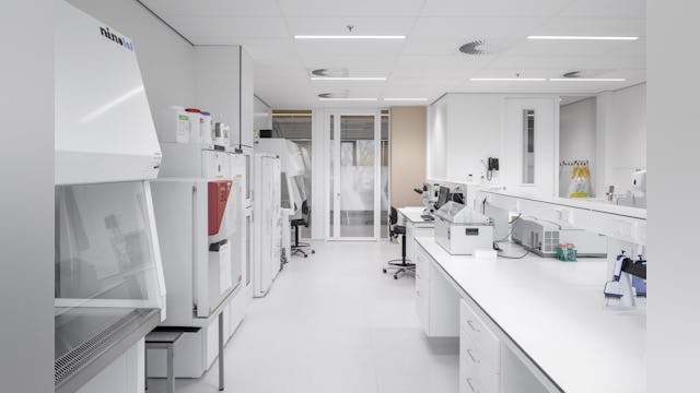 Het lab beschikt onder meer over een Accelerator Mass Spectrometer (AMS), ten behoeve van de ontwikkeling van geneesmiddelen en biedt ruimte aan onderzoek met behulp van nieuwe technologieën zoals robots en augmented reality (AR). Hiervoor is een witte, hygiënische ruimte noodzakelijk. Daar tegenover staan warmte en comfort, terugkomend in andere ruimten zoals het kantoor en het atrium. Hierbij is veel gebruik gemaakt van eiken afwerkingen. De benadrukking van de klinische uitstraling van de labs en het hout zorgt voor een heldere organisatie en contrast binnen het project.
