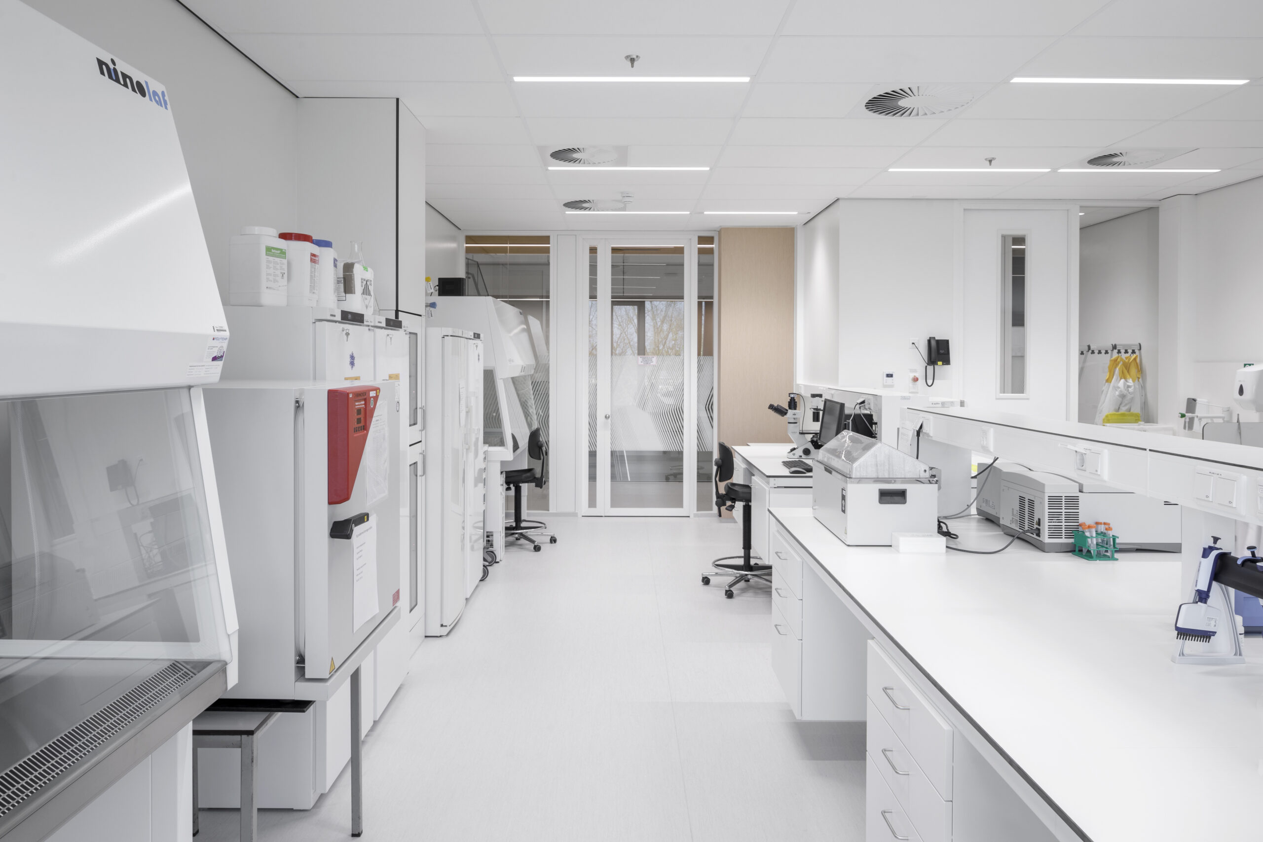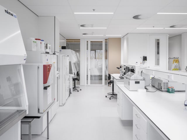 Het ontwerp van het laboratorium (klasse ML2 en ML3) werd bepaald door technische en beveiligingseisen die gekarakteriseerd worden door de bijzondere werkzaamheden van TNO.
