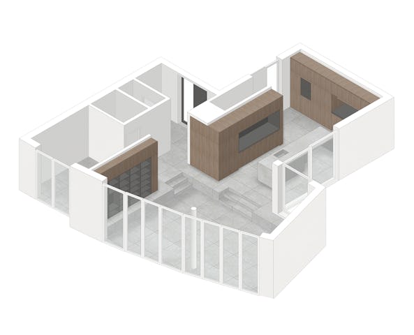 De gecreëerde wandopening tussen woonruimte en voormalige garage zorgt voor een verassend ruimer gevoel. De begane grond is met de transformatie vergroot zonder aan te bouwen, wat het oorspronkelijk idee was van de opdrachtgever. De nieuwe, open plattegrond wordt gestructureerd door verdiepingshoge, meubelachtige volumen, die een aantrekkelijke, meanderende woonruimte opleveren. De aangebrachte vloerverwarming garandeert een duurzaam en aangenaam binnenklimaat.