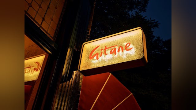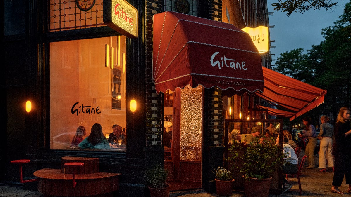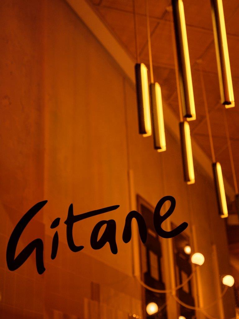 Het interieur van Gitane is verdeeld in drie gebieden: begane grond; tussenverdieping; bar. Het restaurant bevindt zich op de begane grond en op de tussenverdieping, met de bar twee treden lager dan de begane grond. Nadat de keuken sluit, verandert de begane grond geleidelijk in een wijn- en cocktailbar. Elke ruimte heeft een unieke sfeer die past bij een andere stemming, activiteit en tijdstip van de dag. Samen stellen zij een drink- en eetbestemming samen waar iedereen, van fijnproevers tot buurtbewoners, zich thuis zal voelen.
