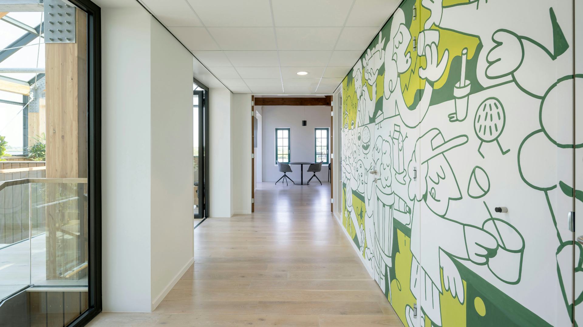 Vanaf de straat kijkt men via een transparante gevel in het laboratorium die ondergebracht is in het voormalige pakhuis. De uitbreiding is vormgegeven als kas. Bij binnenkomst wordt je begroet door een subtropisch paradijs van planten en bomen. Dit groen levert de ruwe ingrediënten waar AAK gebruik van maakt voor onder andere hun plantaardige oliën. Als bezoeker loop je via een trap door het groen naar de bovenste laag waar je een prachtig uitzicht hebt over de Zaan. Op deze verdieping kunnen bezoekers de proeflokalen ervaren en in de kookstudio kunnen koks hun kunsten demonstreren aan het publiek en tegelijkertijd ‘onderzoek’ doen.