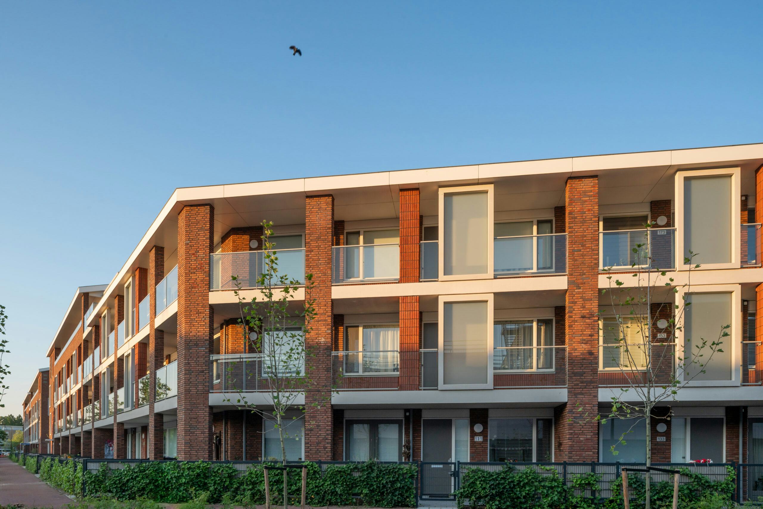 Het metselwerk is in hoogwaardige wasserstrichsteen en alle prefab beton is met witte cement uitgevoerd. De woningen zijn royaal bemeten in oppervlak, met veel glas en grote balkons op het zuidwesten.