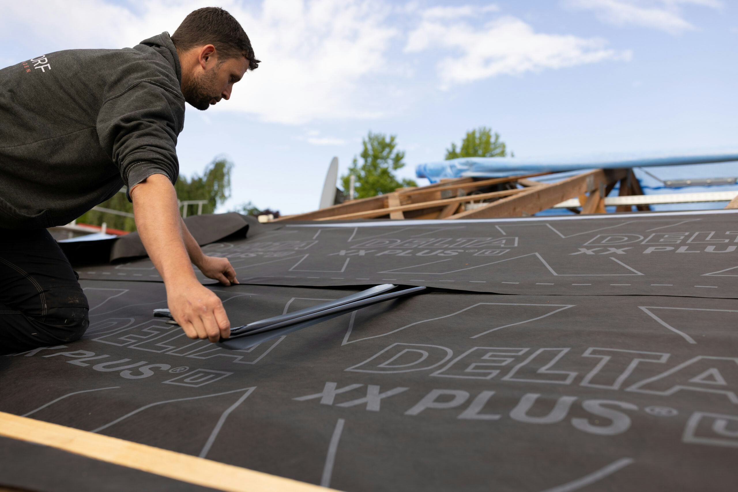 The devil is in the details. De onderdakfolies van Dörken hebben volgens Lex de Haan Dörken Benelux legio voordelen. "Ze zorgen voor een aanvullende waterkering op het dak, naast de dakpannen. Ze laten daarnaast de onderliggende isolatie beter presteren, doordat de folie geen wind doorlaat. En, zeker niet onbelangrijk, de innovatieve folies gaan opvallend veel langer mee dan andere producten in de markt. Die laatste gaan meestal maximaal 10 jaar mee, terwijl op de producten van Dörken een garantie zit van maar liefst 30 jaar. Bovendien bevatten de premium producten – alle DELTA® onderdakfolies – een zeer relevant detail, namelijk een handige dubbele kleefstrook op de randen. Hierbij is gebruik gemaakt van een speciale lijmtechnologie, genaamd DELTA®-Ad Tec. Deze zorgt ervoor dat de folie goed blijft plakken.