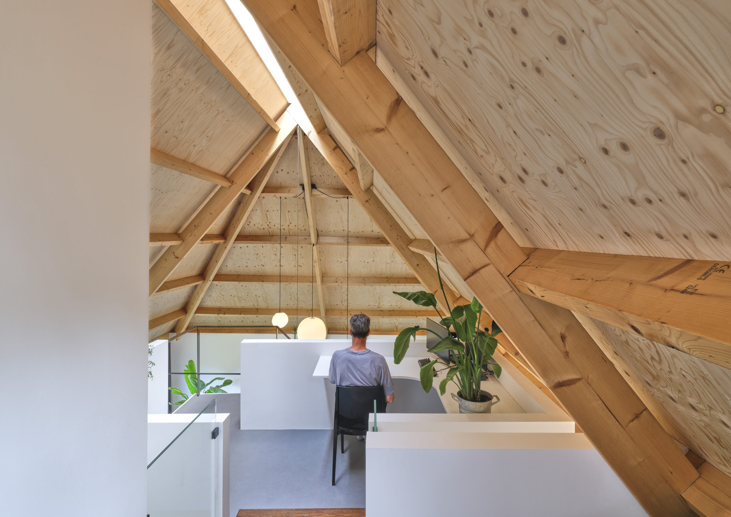 Tijdens het proces zijn er vanuit materieel oogpunt keuzes gemaakt. Het dak met zijn ambachtelijke structuren en details van houten spanten en gordingen zorgt voor een zeer warm en vriendelijk interieur.