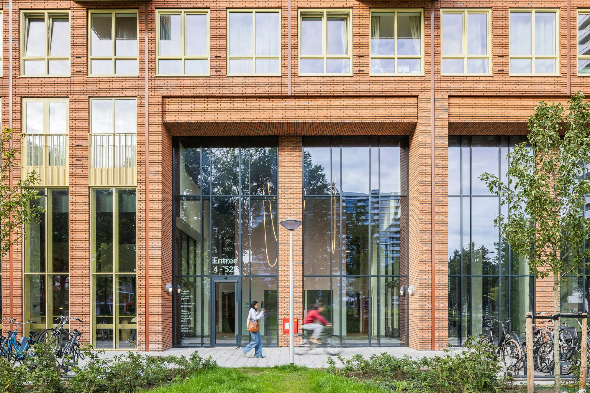 Bijzonder aan het project is het collectieve programma, dat naadloos aansluit op het overwegend éénkamerprogramma. Doordat de drielaagse plint compleet gevuld is met gezamenlijke functies zoals een lobby, een ‘huiskamer’ met barretje/lounge, een horecavoorziening, een laundry en een grote fietsenstalling, krijgen bewoners een full-service-ervaring en wordt interactie en ontmoeting gestimuleerd. Dankzij twee glazen puien aan weerszijden van de entreehal wordt deze ruimte een verbinder tussen meerdere gezamenlijke ruimtes.