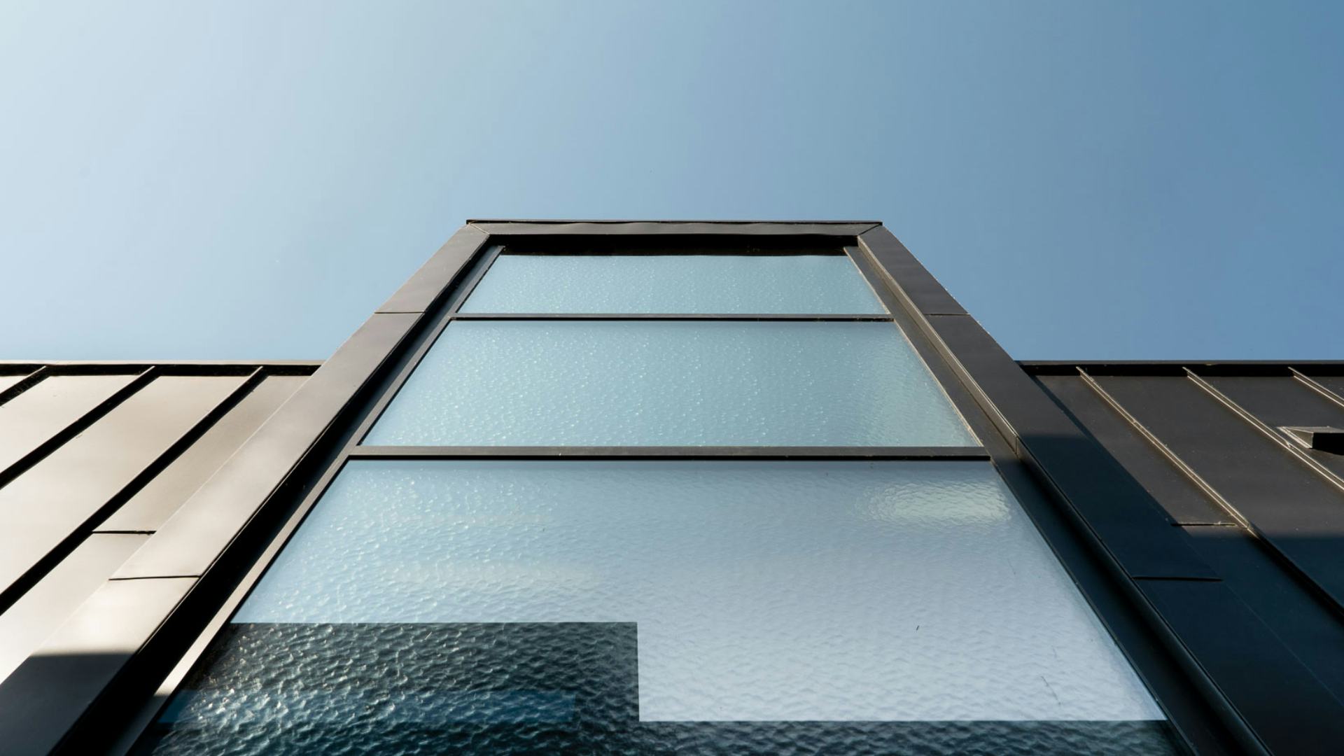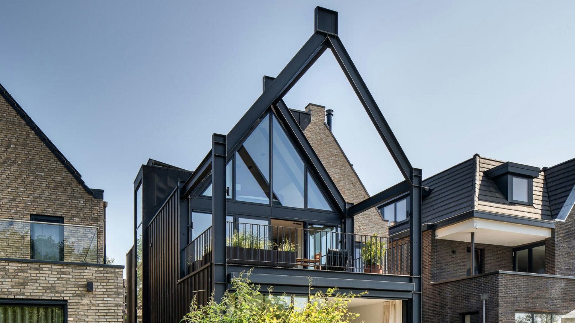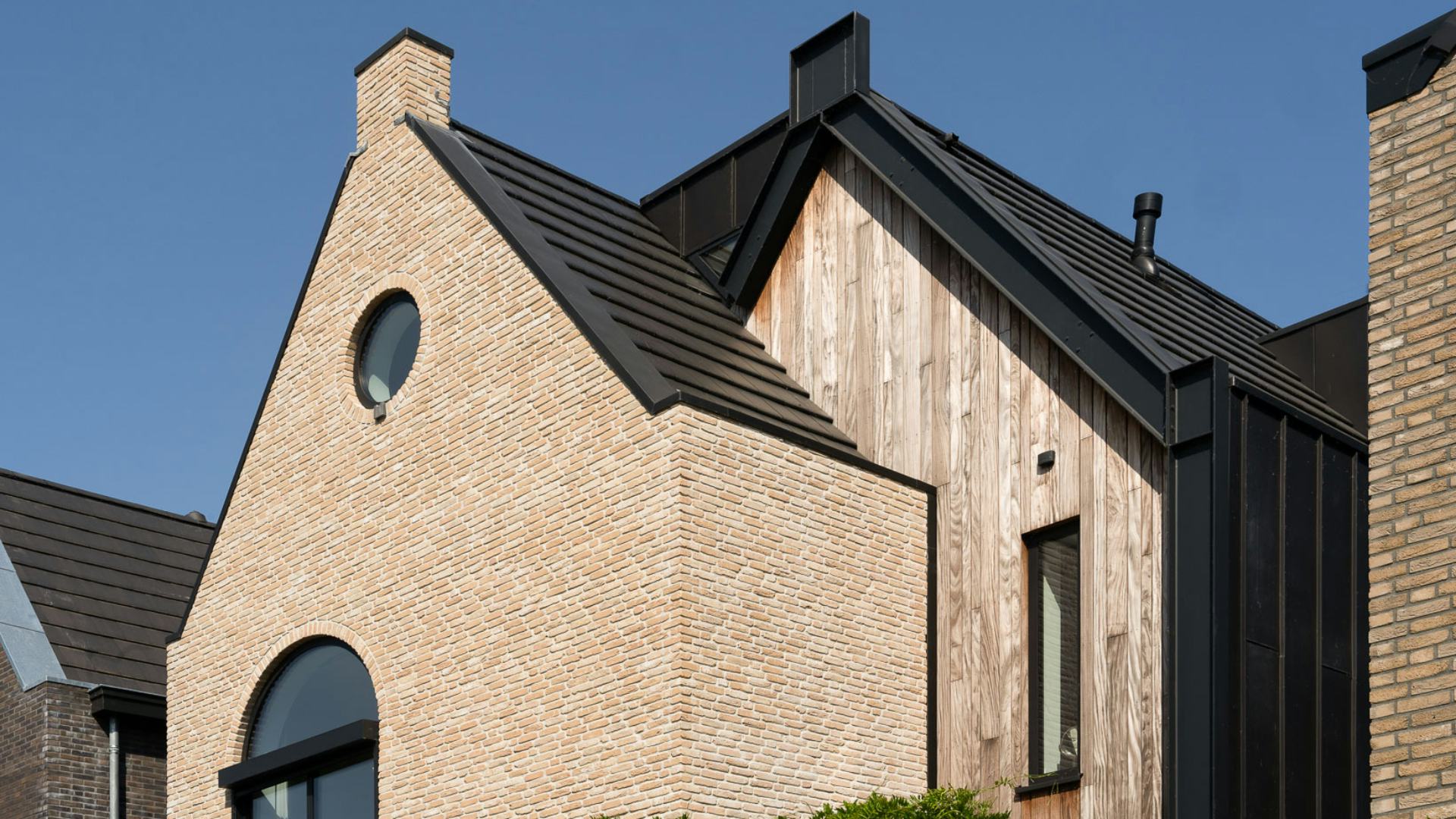 Het moderne volume, dat enkele meters terugspringt, is gemaakt van staal, zwart zink en afrormosia hout. Dit deel heeft ook een tuitgevel, maar dan vormgegeven in staal. Zodoende is het moderne volume een kopie van de oude variant maar dan in een eigen jasje.